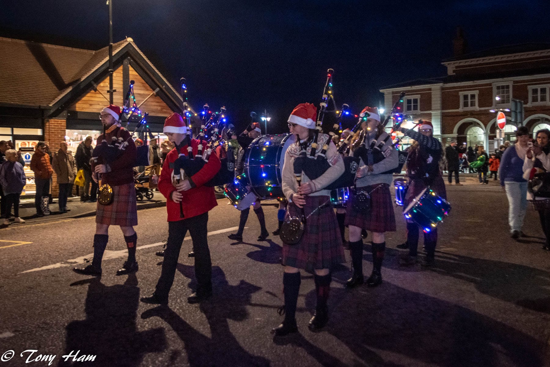 And then it was time for the parade. It didn't seem quite as big this year as previously, but, no matter, Santa was still there, giving the reindeer a rest and back in his carriage. There were bagpipes, the Ryebellion drummers, 19th century costumes, children with lanterns and many followers who joined in as the procession moved through the town.