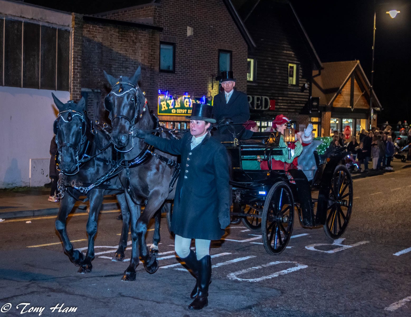 With roads closed and traffic thankfully banned from the High Street, shoppers, visitors and spectators were already starting to gather as Father Christmas, having parked his aquatic sleigh at Strand Quay, and preceded by the never-undervoiced town crier took to an immaculate and decorated carriage and pair for his procession to Santa's Grotto, where he was kept busy for most of the day. Added to the Santa theme this year was the Elf Academy for all aspiring little helpers for Santa.