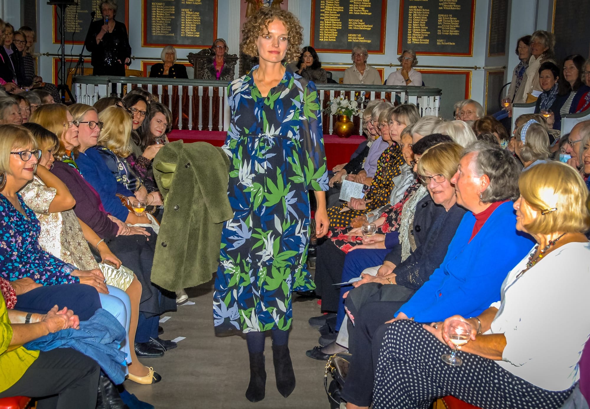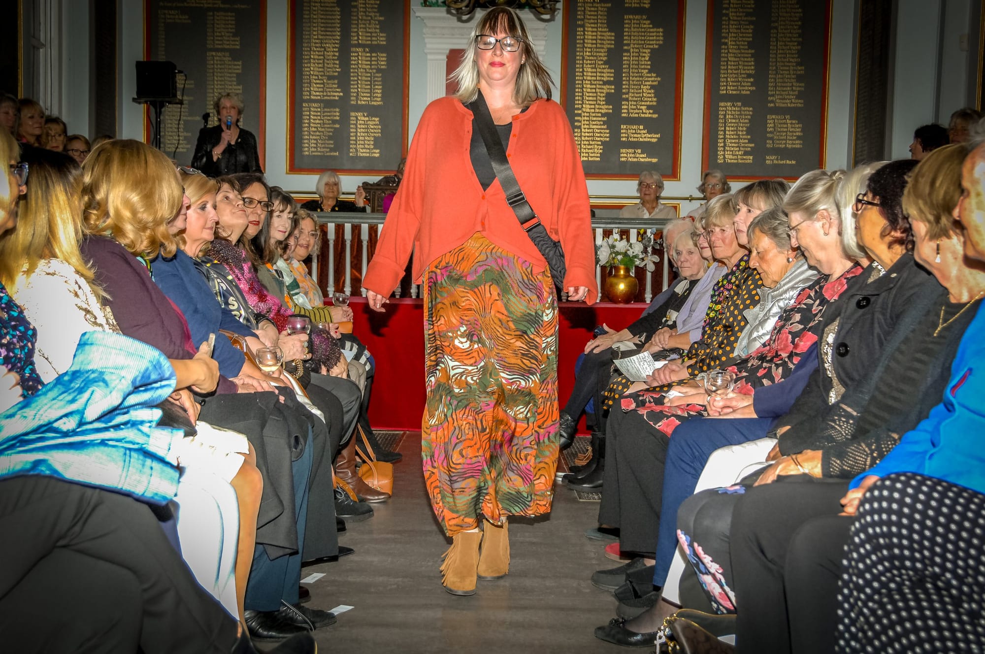 The skill of a leader is to motivate and bring out the best in their team and Lesley and Jane weren't short of willing helpers, happy volunteers and enthusiastic supporters. Come 7pm, Lesley took to the microphone and lovingly described every outfit, from its origin, to its colour and its versatility. Relaxed and happy models, including Jane herself, paraded in front of a full house of spectators drawn from the town, the boutique and the hospital.