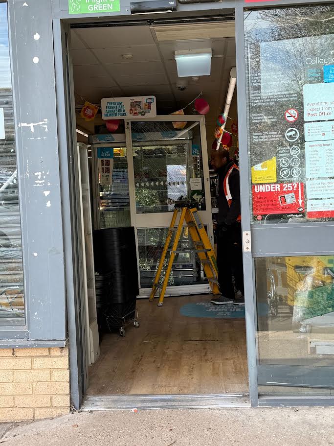 The store which was closed for a time has since re-opened with heavy boarding on the main door.