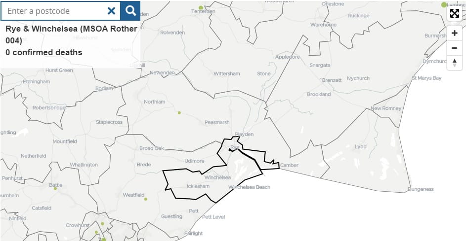 As a further reassurance to the people of Rye of the low Covid-19 death rate in the area, the ONS’s database allows you to search by postcode. Up to 19 April 2020 there have been no confirmed deaths from Covid-19 in the TN31 postcode – which covers Rye and Winchelsea.