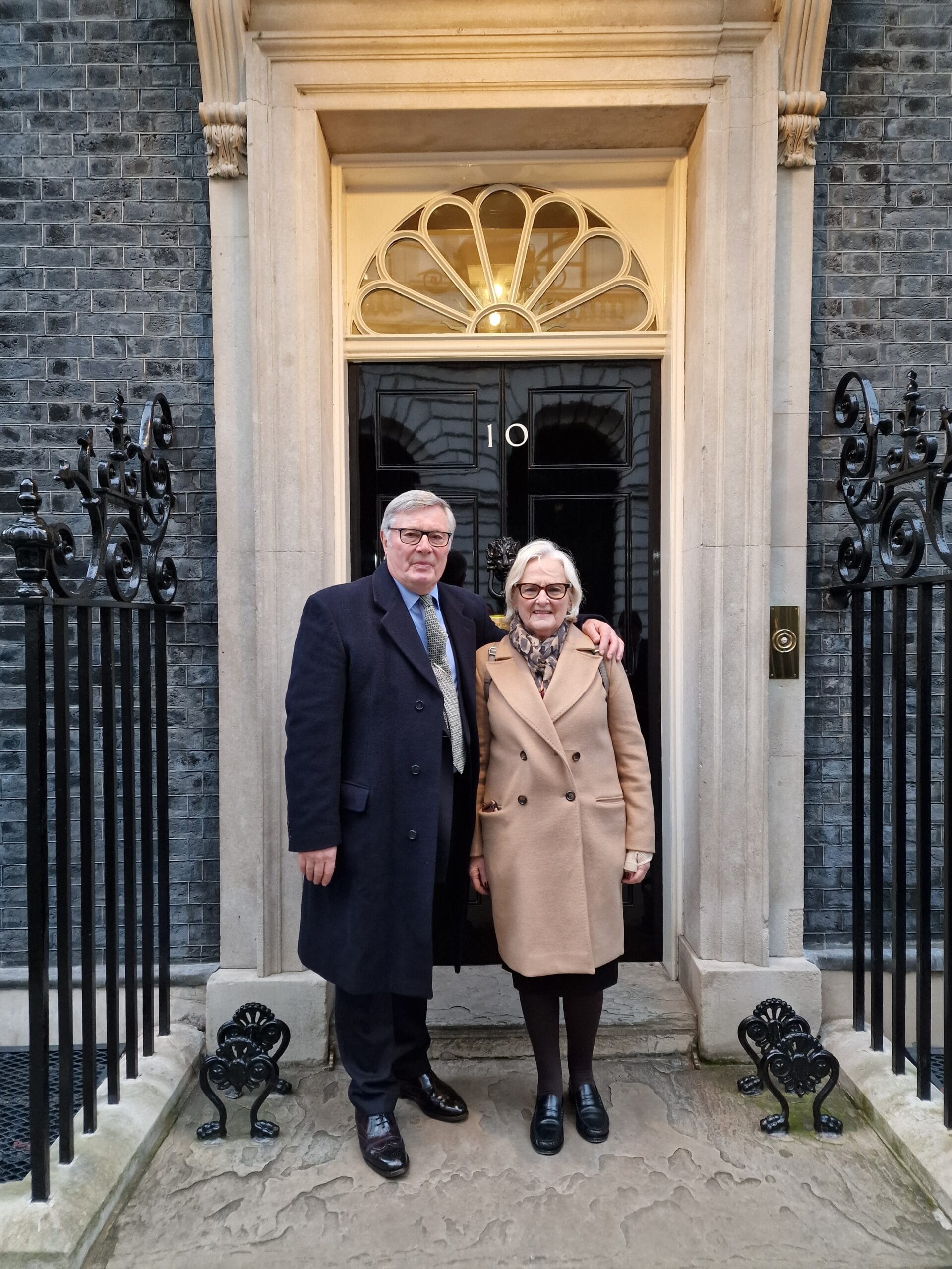“All the guests were hosted by their MPs. In my case Sally-Ann Hart was on hand. One or two MPs I met remarked that they had never been inside Number 10 before. We all went up the famous staircase to a reception in the first floor rooms of Number 10, and afterwards we had photographs taken and a short greeting from the PM. Whilst inside, my wife Elizabeth was invited into the forecourt by the armed police, where we were photographed together in front of the famous door.”