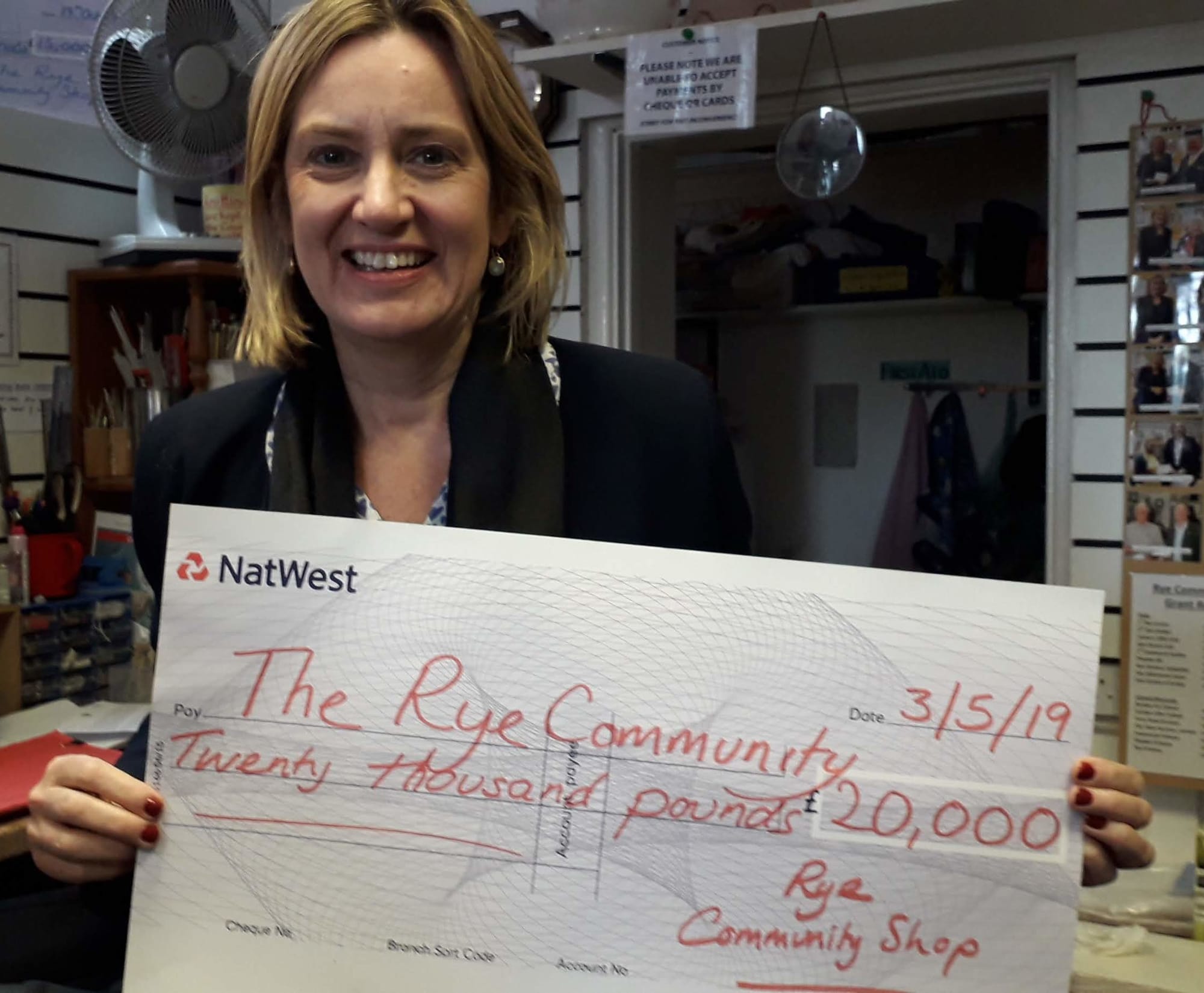 Rye MP, Amber Rudd visited the Rye Community Shop in Cinque Ports Street on Friday May 3. Each year the shop provides grants for local projects whose organisers have applied for assistance. Amber Rudd, presented each project representative with a cheque and we heard from them a little of how this contribution would help with a variety of different plans.