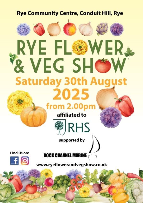 The booklet schedules are already out in town and you can pick one up at Bargain Box, Adams, the Library and many other venues. If you prefer, the full schedule is also online at www.ryeflowerandvegshow.co.uk along with an interactive form so that you can pop your entries over to us even more easily.