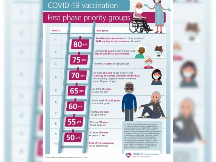 In tandem with these next groups, from March, it is expected that second vaccinations for groups 1 to 4 are expected to start. National NHS records are available in all vaccination locations and will indicate the type of vaccine due and when. This week, from some conversations with those who have been given both their dates, it appears that the separation between the first and second appointments will be around 12 weeks.