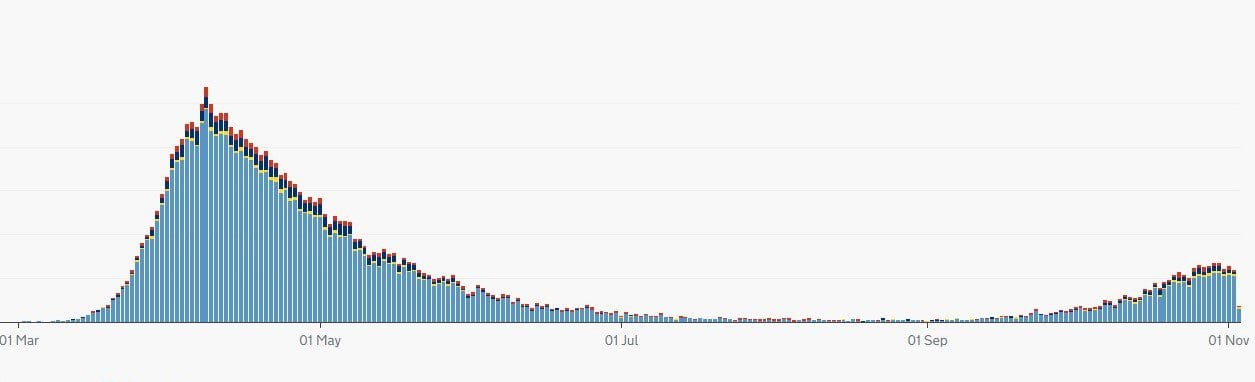 "A lockdown will drop transmission rates, of that there is no doubt. But is it actually necessary this time? The alarming graphs and graphics produced in its justification were too full of detail to take in at first sight (and rather absent of detail as to how they were derived, and by whom). But others have now looked at the figures, and found them wanting.