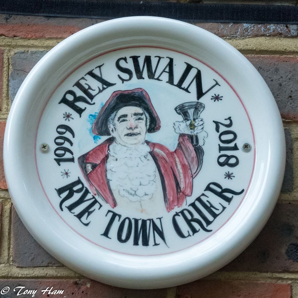 Rye's new Town Crier, Paul Goring, continued the compliments to Rex (extremely loudly) in the Town Hall garden when the Mayor Cllr Michael Boyd unveiled a plaque on the wall commemorating Rex's work.