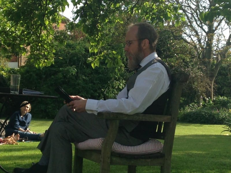 As shown right, when Richard Crowest was doing one of his summer readings in the Lamb House garden, the mulberry once extended far and wide, providing summery shelter to both the audience and the reader.