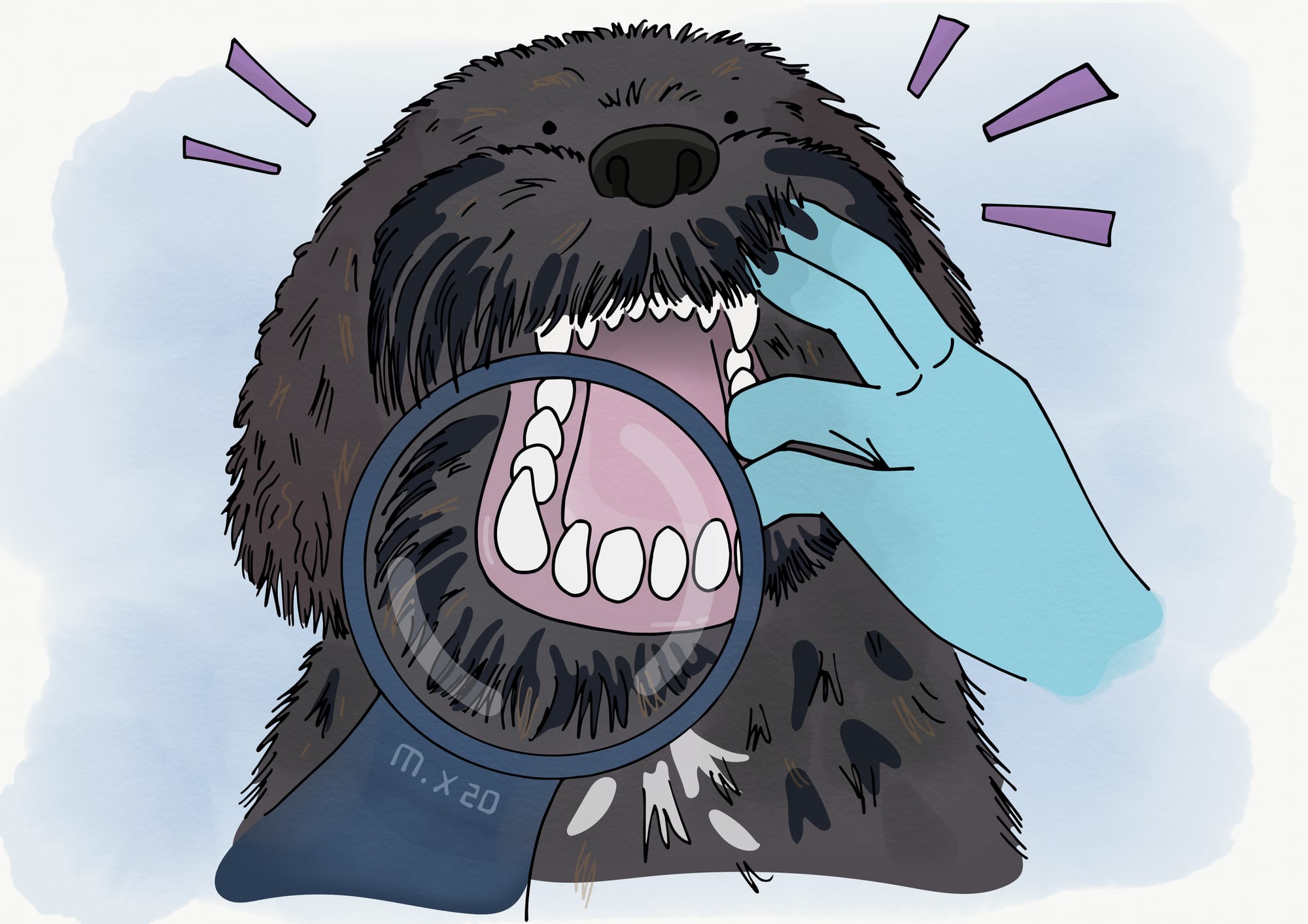 After waiting a few minutes he heard his name being called and he was taken into another room, where he was met by a furless two legs in a white coat. Without so much as a ‘hello, would you like a treat’ he was lifted onto the table. Two very big hands grabbed his face and rudely opened his mouth. “Yes, that’s certainly a cracked tooth” he heard a voice say. Everything after that was a bit of a blur. The next thing he knew, he was being driven home with a rather sore mouth.