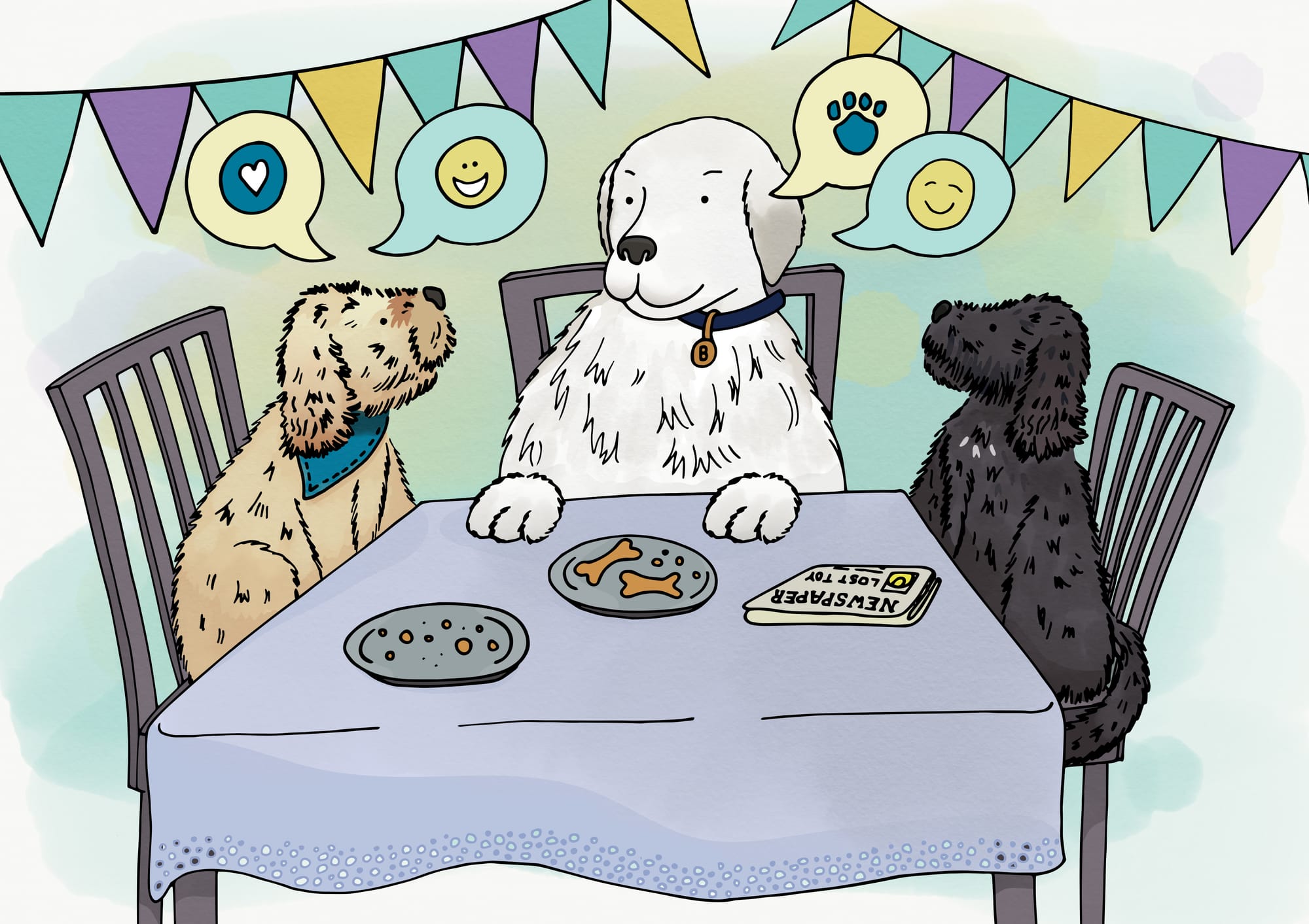 When he walked through the door, DeDe was pleased to see him although his breath smelt terrible, and she preferred he didn’t come too close. This was a little unfair, after all he had done to help her get over her bad dream. Surely she could put up with a little smelly breath and be kind? Couldn’t she see his legs were wobbly? Feeling a little hurt, he took himself off to find a comfy spot by the fire.