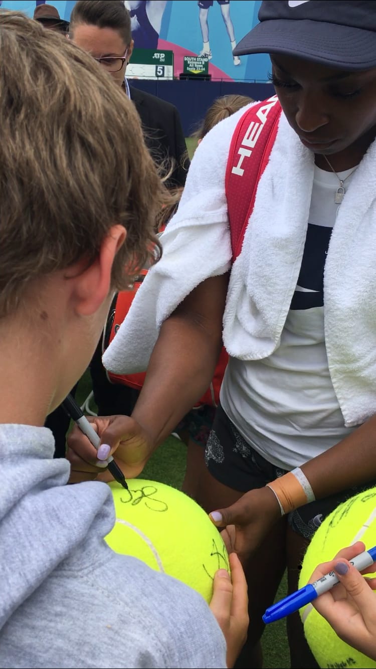 Fortunately the American player, Sloane Stephens was the first person we noticed. She was playing a practice match (wow she hits the ball hard!) which we caught the end of and then waited for her to come off court. She dutifully signed away for a few minutes and posed for photos – I felt quite star struck for a moment or two.