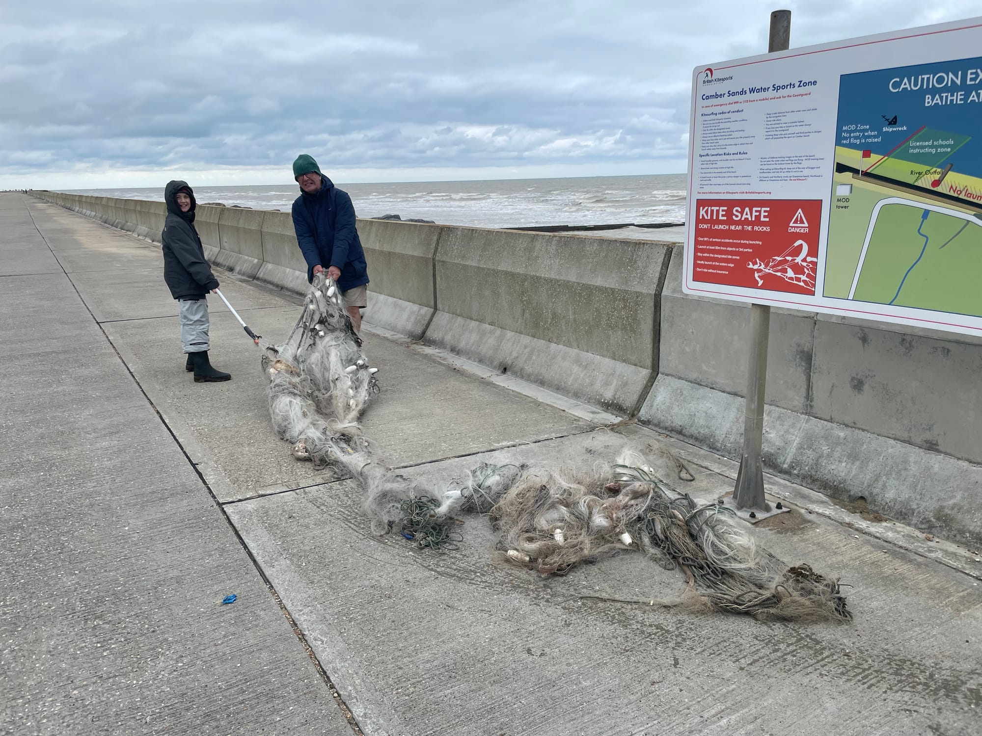 At 11am on 29 October Graham Nicholls' grandson Lukas spotted a large fishing net caught in the groynes on Broomhill Sands.