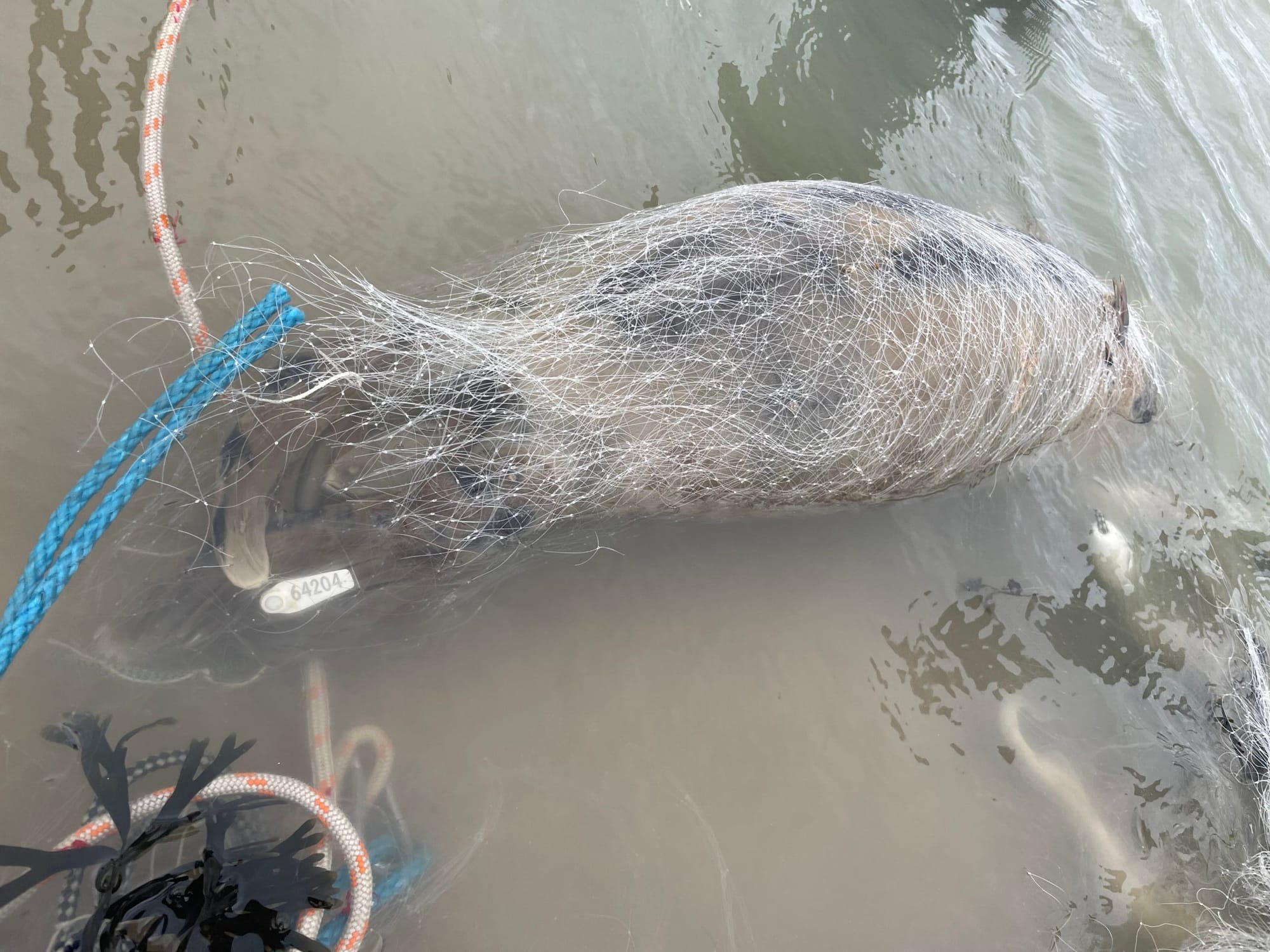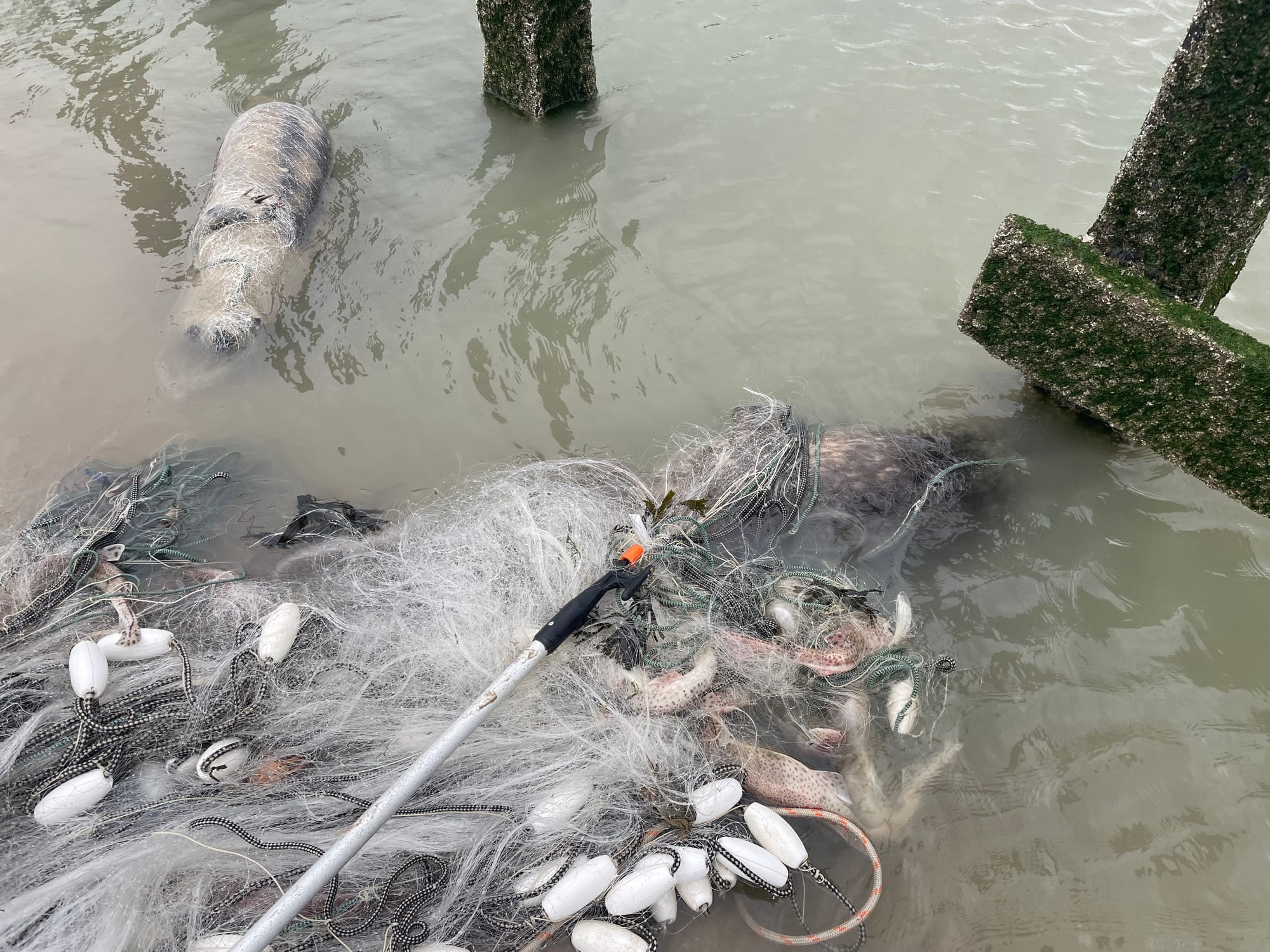He says on closer inspection they discovered the two seals caught in the net. "We rushed home to collect cutting equipment before removing the net from the sea. The tide was racing in and we had to work quickly to free the seals. Sadly, there was no sign of life and there were a lot of tears as we let the seal carcasses be taken away by the tide. They are such beautiful animals and it is so sad what has happened to them. This type of drift net causes untold damage to sea mammals."