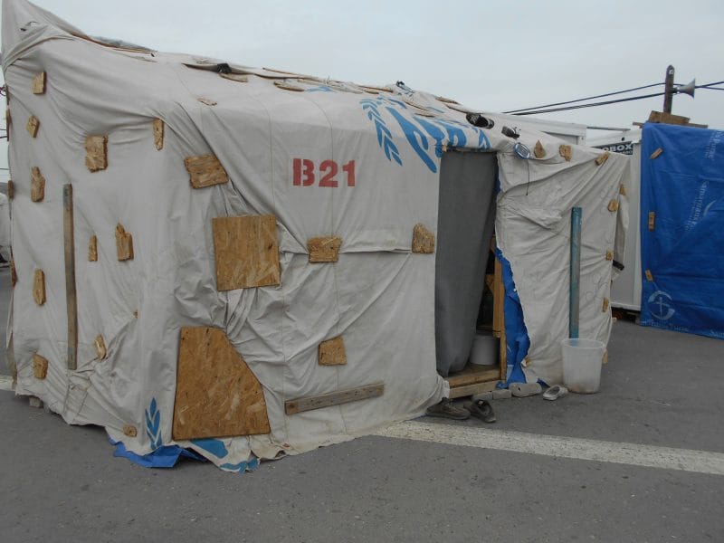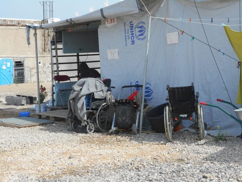My fourth trip was in April and May, and, as on two previous visits Diana, my wife, accompanied me to assist. I have observed how the situation has evolved since my first visit in July 2016. Then all the refugees were in camps with military guards and housed in tents, as dentists we were working in tents or shipping containers. By February 2017 the situation had changed. Only a few people were housed in tents and now none are. Many of the camps have been dispersed, with under occupied hotels or private flats being rented to provide accommodation, the very poor economic situation in Greece making this easier. In the camps that continue to exist, the housing is in portable cabins. It was interesting to see how some of these have been customised with makeshift extensions. The portable cabins do not have running water; toilet and shower blocks are provided separately.