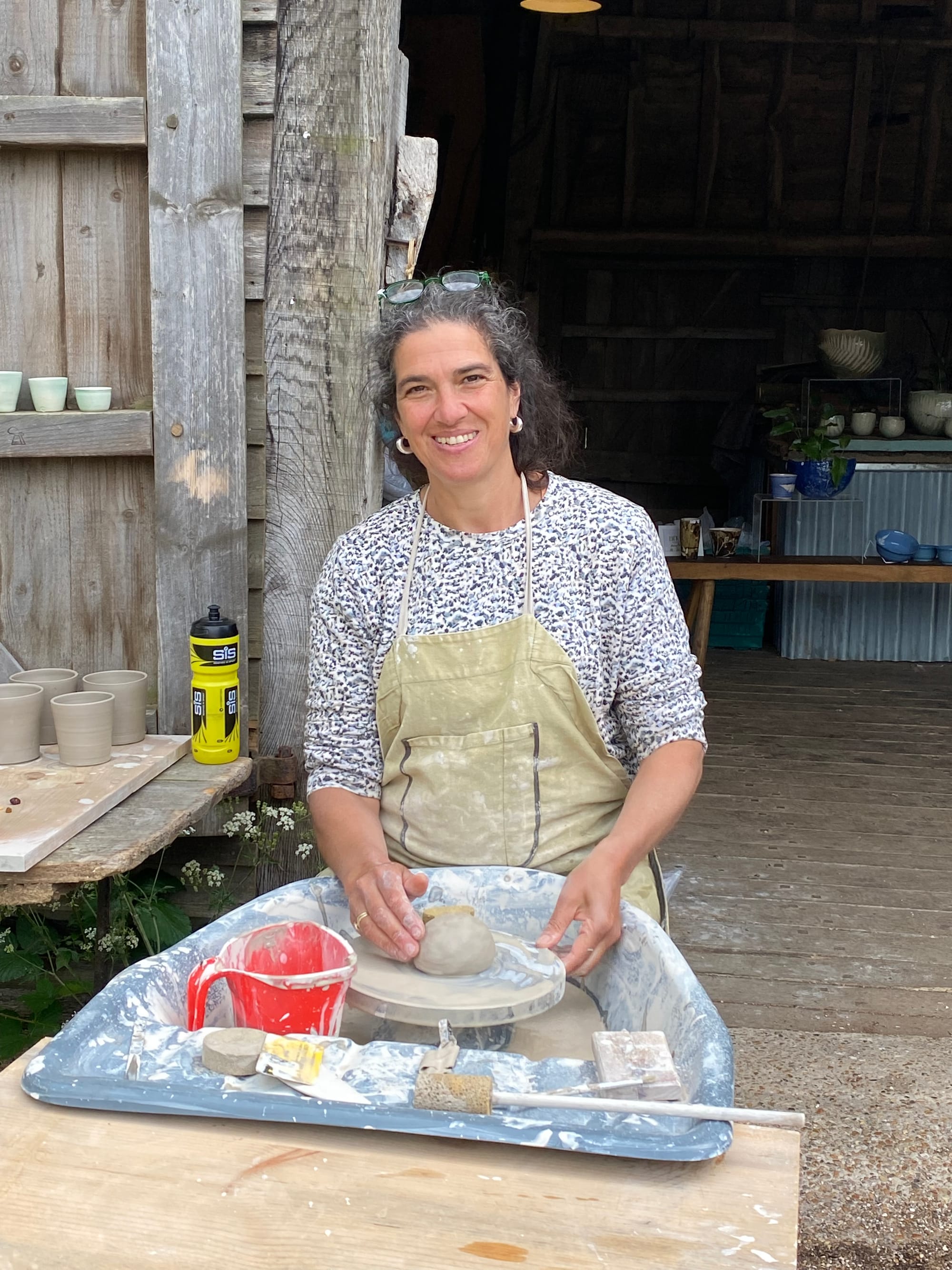 Visiting Great Dixter House and Garden at Northiam last weekend, May 21, it turned out there was a pottery demonstration going on in the Great Barn. The studio potter and lover of all things clay, Alex O'Reilly, the Cade Street Potter, was in action complete with wheel, throwing her pots and selling some as well. She was there as part of the Chelsea Fringe Festival all weekend.