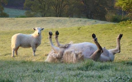 Finally if you are enjoying a walk around the countryside and see a sheep that appears to be sunbathing (see picture, right), they are actually likely to be stuck on their backs and need to be turned over ASAP before their stomach gases build up and make them die. Just roll them over, being careful of their flaying legs, and hopefully they will walk away. Occasionally they may stagger or fall over a few times similar to a drunk leaving the pub, but once they gather their bearings they will soon be right as rain until they find another way of trying to kill themselves!