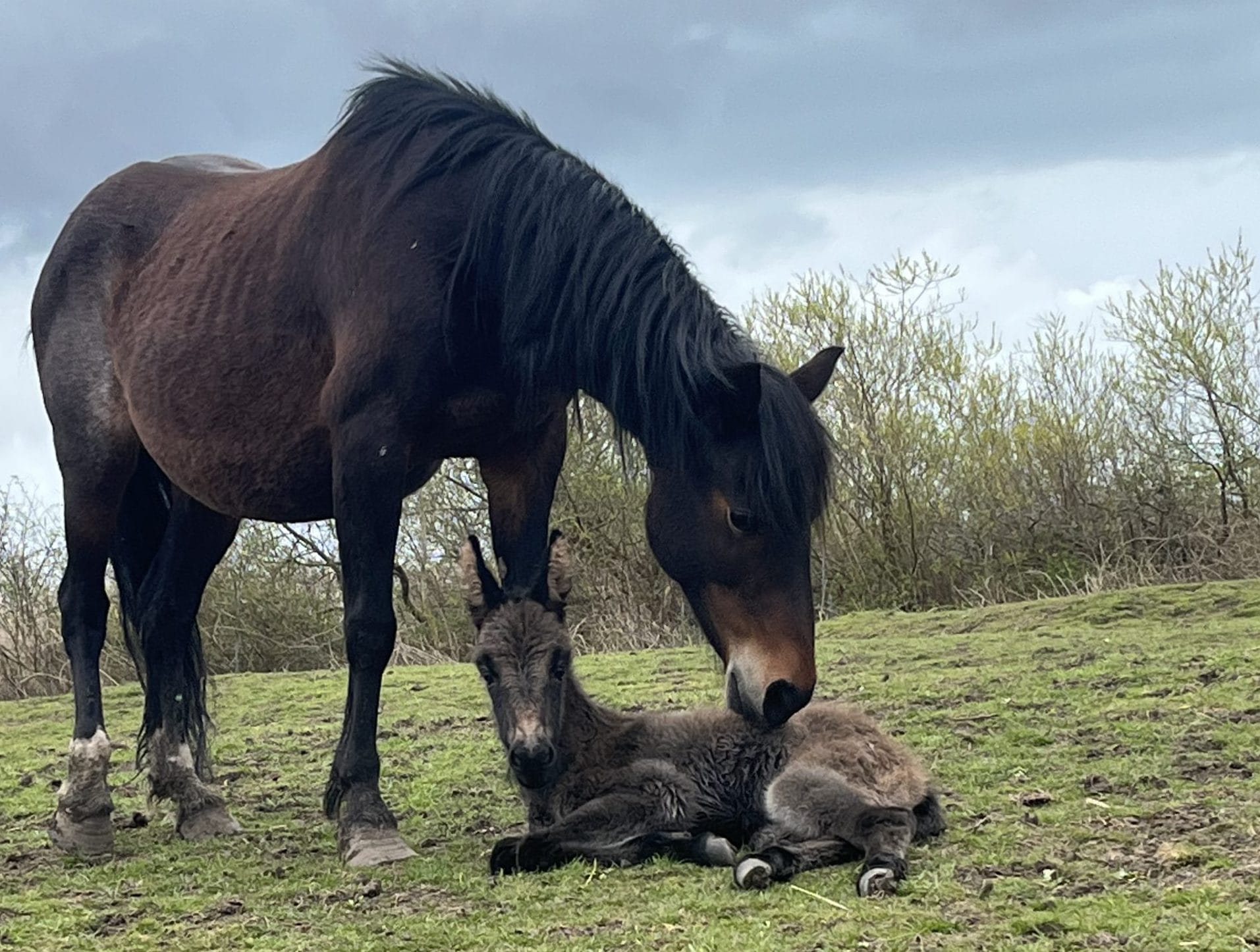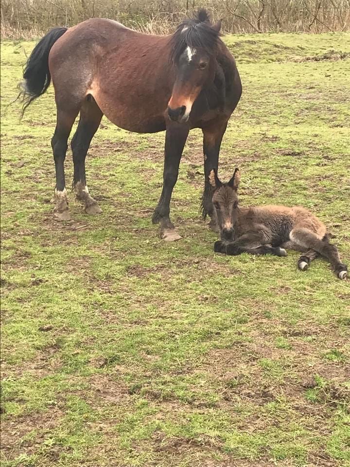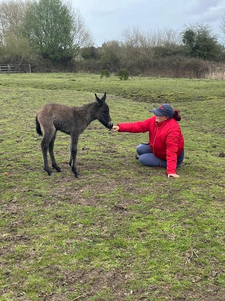 Sharon is absolutely delighted at the safe and healthy arrival of Undercliff Pony Rescue's first ever home-bred foal. Donny the donkey, who unexpectedly fathered the foal at 29 years old, is nonplussed and behaving as usual.