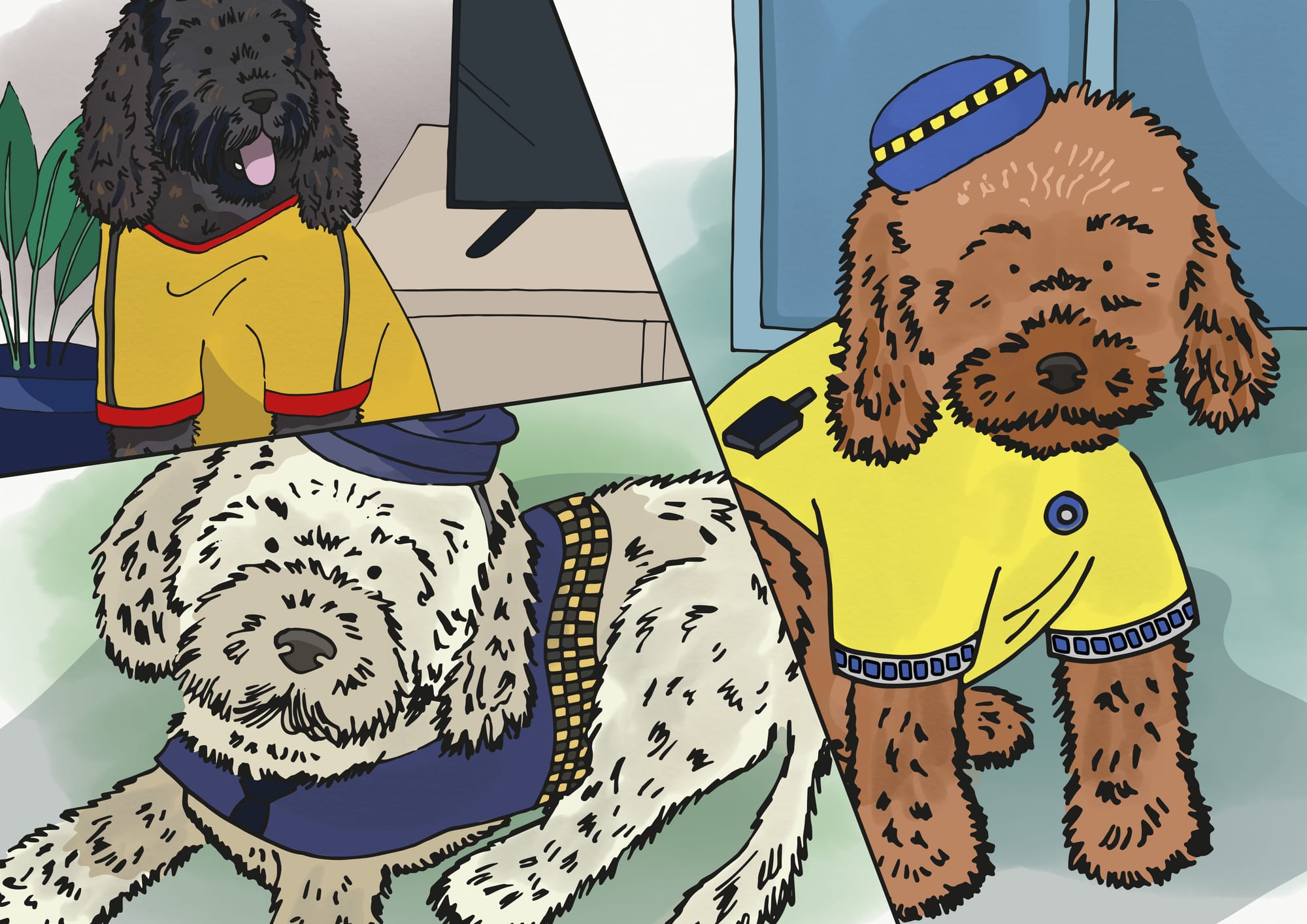 They thought for a while and wondered what they could do next. They were normally doodle dashing on the beach at this time, so it felt strange to still be in doors. Then Dante had an idea. We could play a game where we all dress up and let the others guess who we are meant to be. Harley wasn’t keen on dressing up, but as he didn’t want to upset his best friend, he pretended he was looking forward to it.