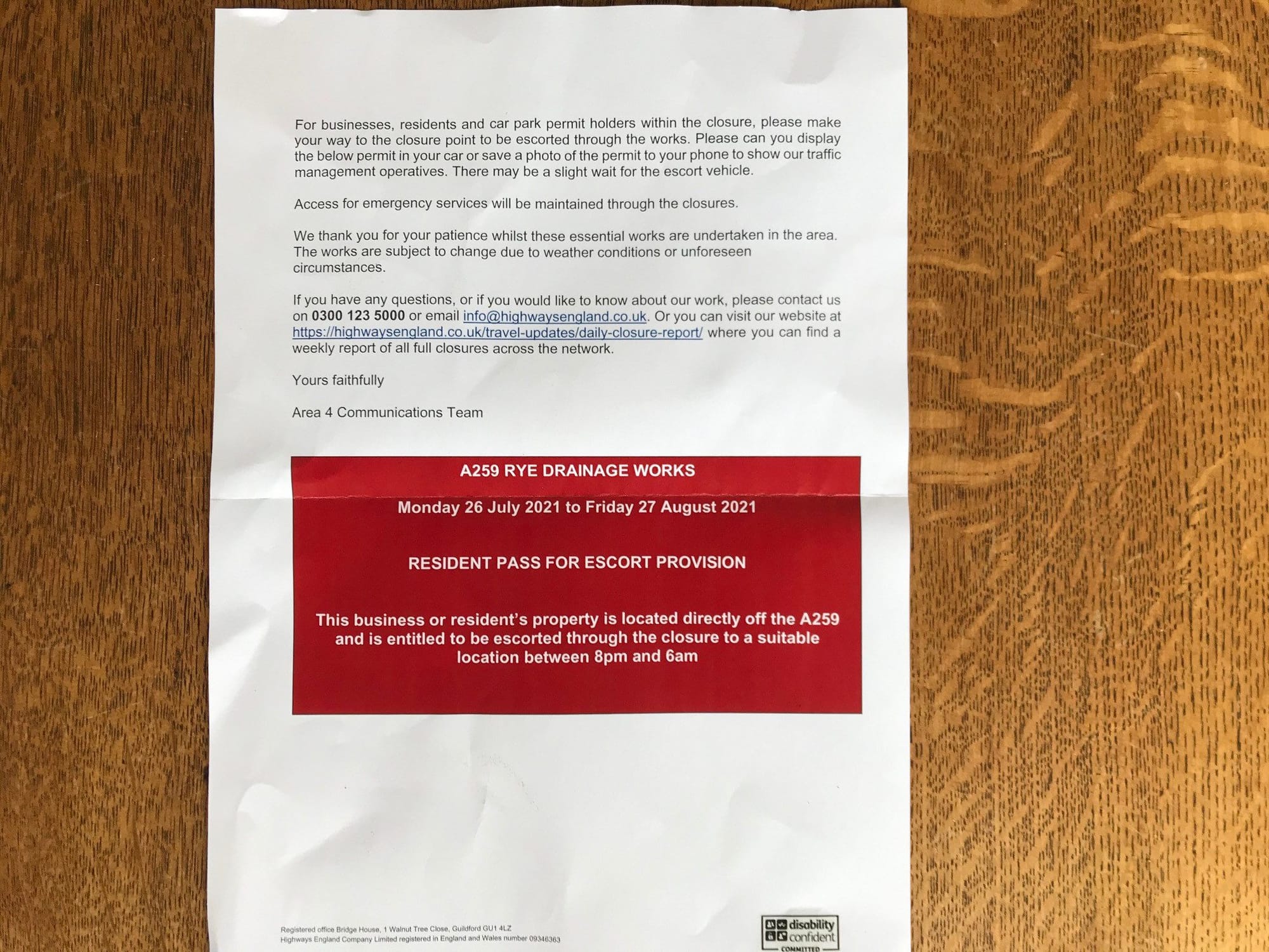 Rather than reinvent the wheel and rewrite the letter received, I have reproduced it verbatim which tells us everything we need to know and interestingly, on the reverse, in red, is a resident pass for escort provision which we can either display in our vehicles or show a copy on our phone to the traffic management operatives which, when we do, will enable us to be escorted through the road closure.
