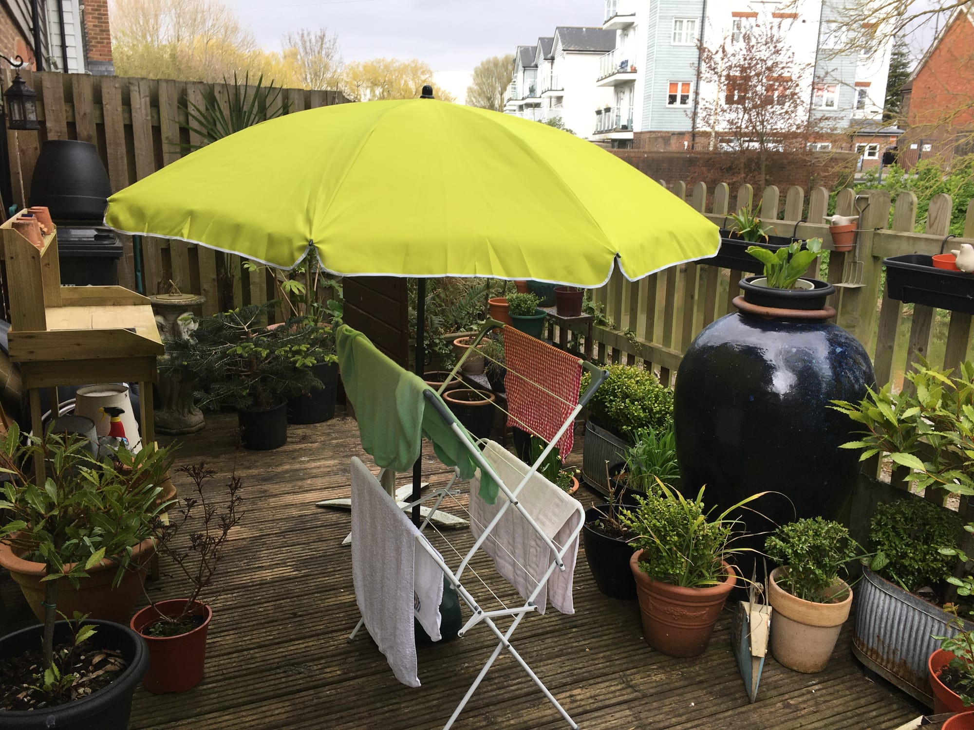 I also have to go to great lengths if I sit outside, or try to dry washing, to find or provide shelter as, even though we have protective anti bird spikes on our roofs, their droppings still splash down and are very unpleasant. The picture tells the story.