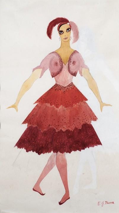 Post war, Burra’s successful, high society, friends from his joyously free years fed him a series of fantastic commissions, creating highly original ideas for opera, ballet and theatre scenes. He rediscovered his delight in beautiful music, dance and people, expressing this in new work.