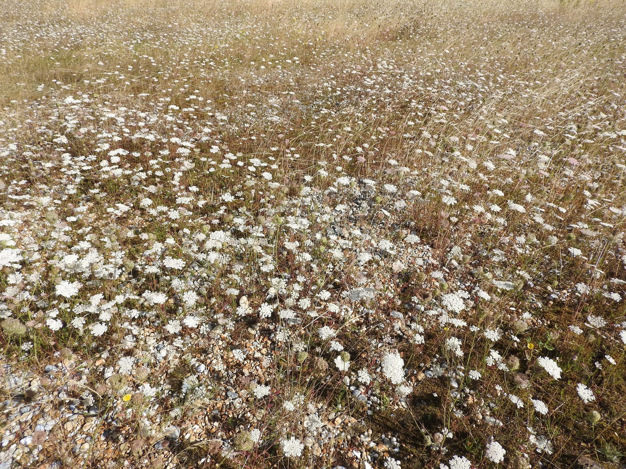 Probably the best place to look for it will be on the damaged shingle habitats inside the rabbit-fenced exclosures at the western side of Flat Beach. For many years this area was a ‘sea’ of non-native Red Valerian, but a program of removal followed by spreading of Wild Carrot seeds has now made it suitable as a Sussex Emerald breeding habitat.