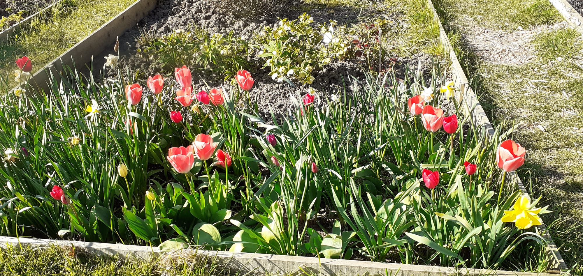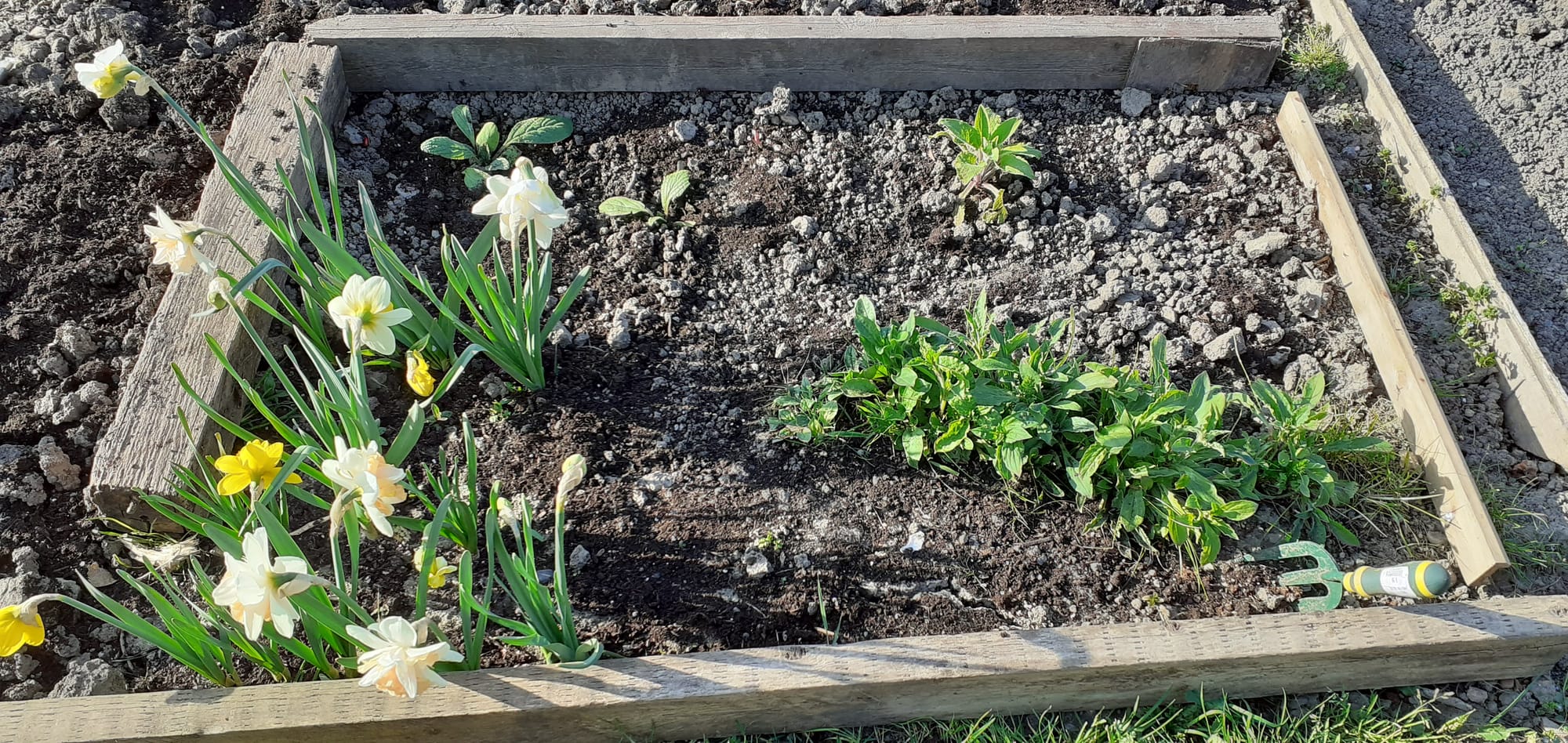 Being a novice at this, my first attempt for my wild flower bed to attract butterflies and bees didn't quite happen. However, a small bed was more manageable and my first flowers appeared for Easter.