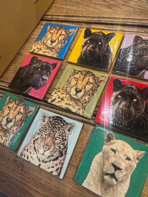 As part of the fundraiser at Ethel, framed photos of the cats at the sanctuary, taken by volunteer Peter Norgrove, are on sale. There are also cat-themed prints and some special, limited edition, decoupage tiles featuring Peter’s artwork. Visitors to the shops can also support the fundraiser directly by donating online.