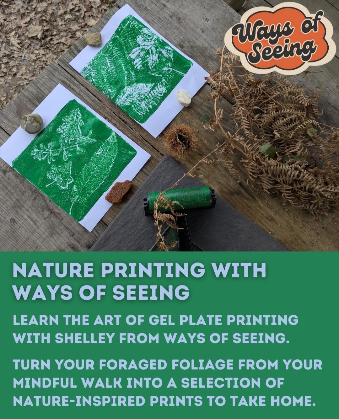 Saturday 12th April, 10:00-12:30A mindful walk led by Carolyn Gouldnature printing with ways of seeinglight refreshments£25 per adultemail: info@swallowtailhill.com / call: 01797 260 890 to book