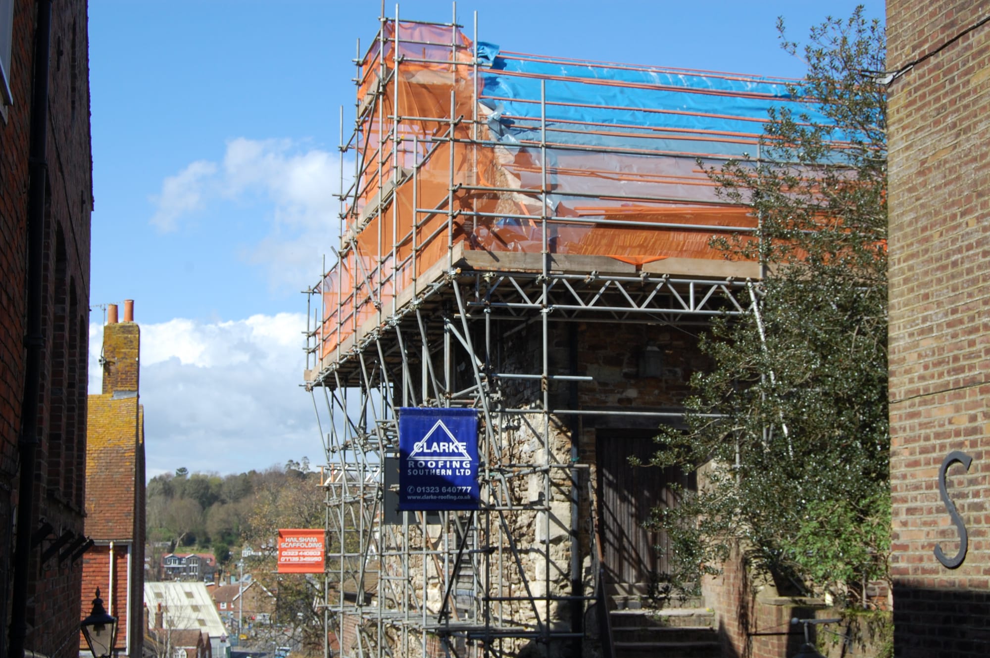 Closer to home, there’s scaffolding around the Old Monastery on Conduit Hill, which is having a roof-lift. Not much of a story there at the moment perhaps, but in Church Square the south side of St Mary’s (Rye's Norman parish church) is also undergoing maintenance. I asked John Gurney, church surveyor, what was going on. "It’s the pigeons," he replied, "we’re blocking up the holes under the eves to keep the pigeons out." The work has evidently come to a stop, because the scaffolders were due to have dismantled and re-erected on the north side of the church by now.