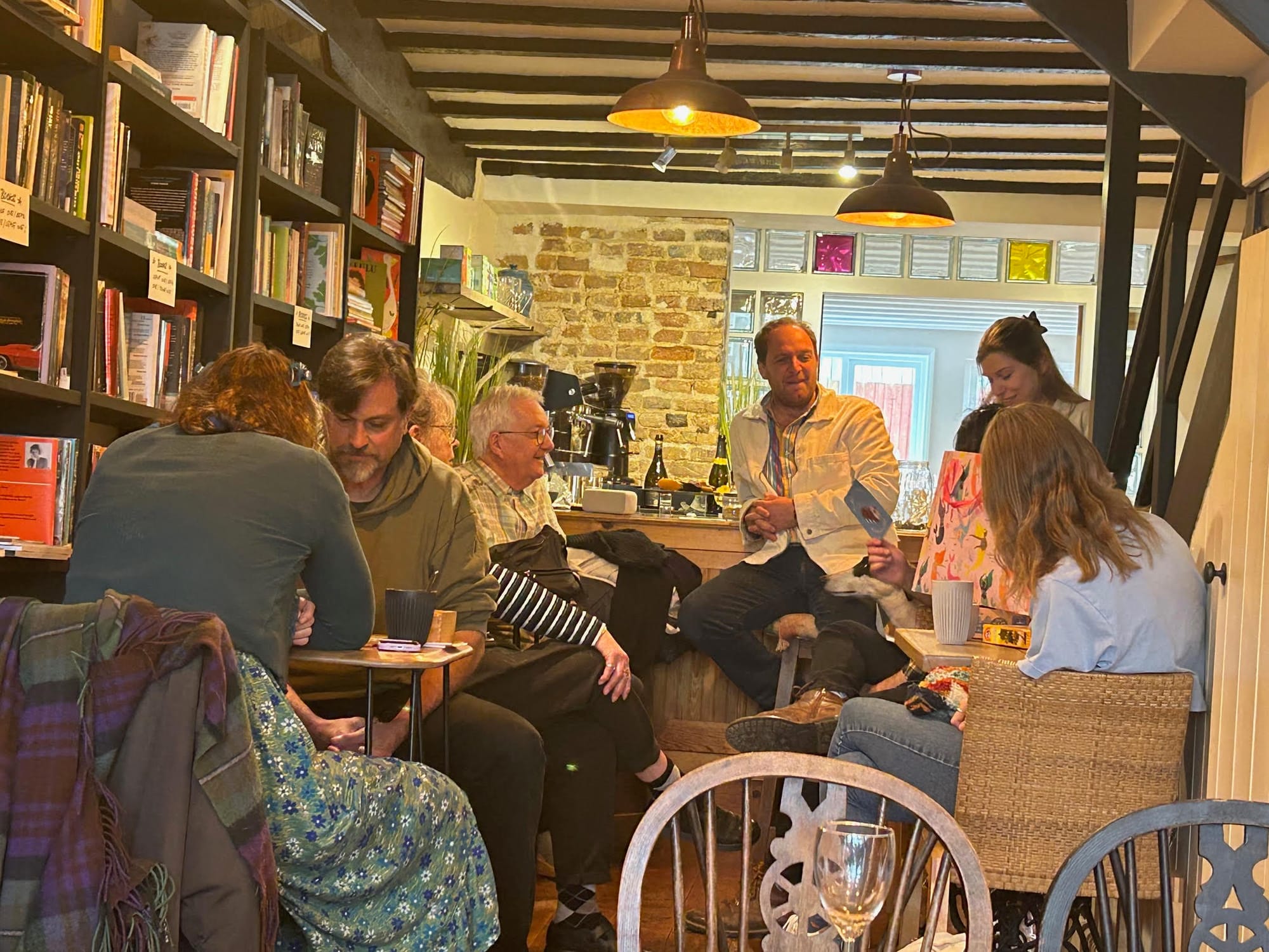 After the sudden passing of Michel, Sally felt a strong desire to “give back” to the community that had supported her family during their time of loss. This led her to transform Rye Old Books, a cherished local landmark, into the vibrant GROUNDED space. Sally’s architectural skills were key to the transformation, as she reused materials from past projects — paving slabs and bricks unearthed in the courtyard, wooden panels from the old bookshop (now serving as the coffee counter), and light fixtures and furniture repurposed from a recently closed local vegan café.