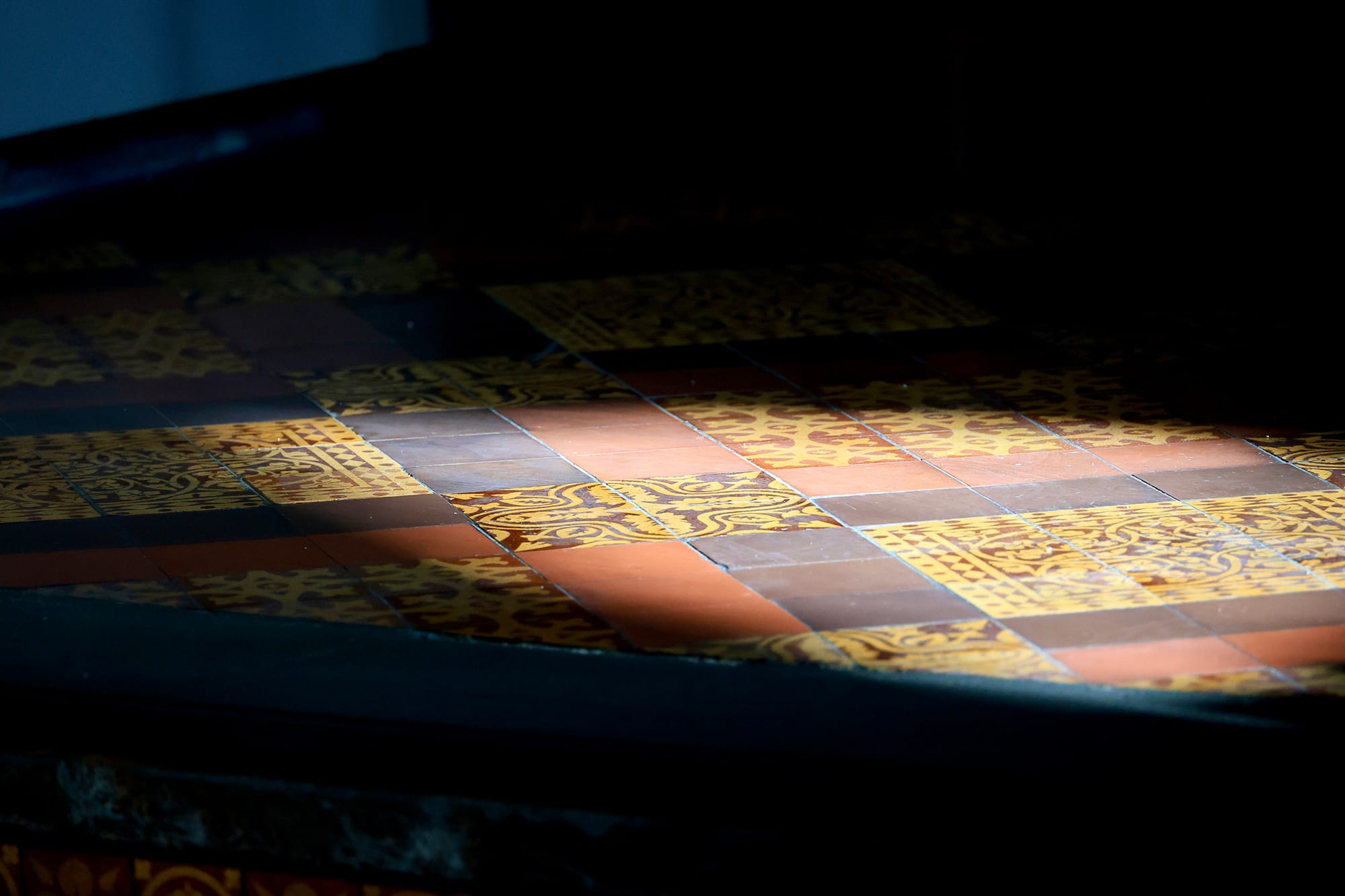 Facebook photographs of beautiful tiles discovered under the chancel carpet at St Mary’s prompted me to investigate and to meet up with Rev Paul White to find out more.