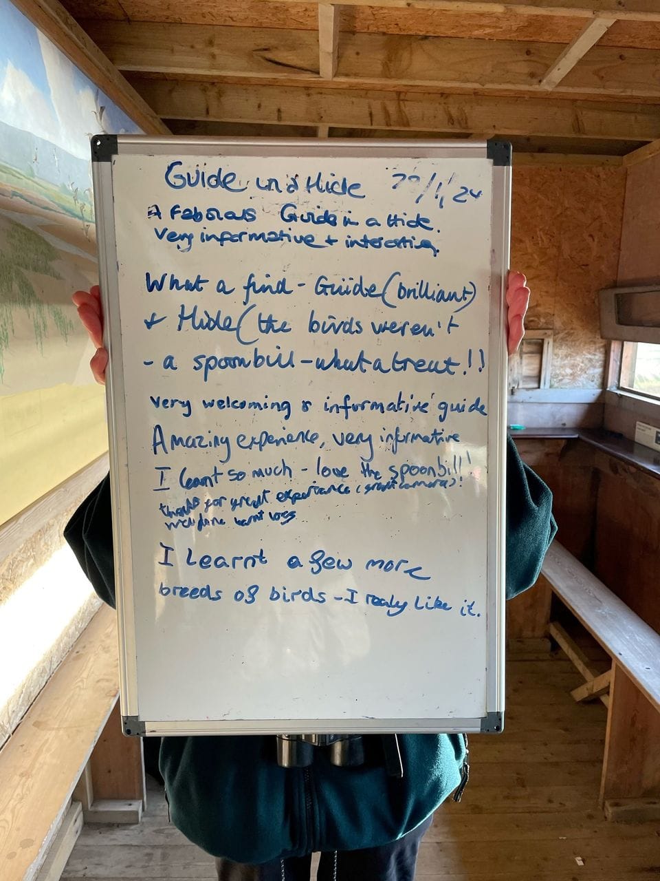 Volunteer guides are stationed at Gooders Hide throughout the day and encourage visitors to spend some time in the hide and learn about the bird life. Telescopes and binoculars are provided so people can get a really good view of what’s out there.