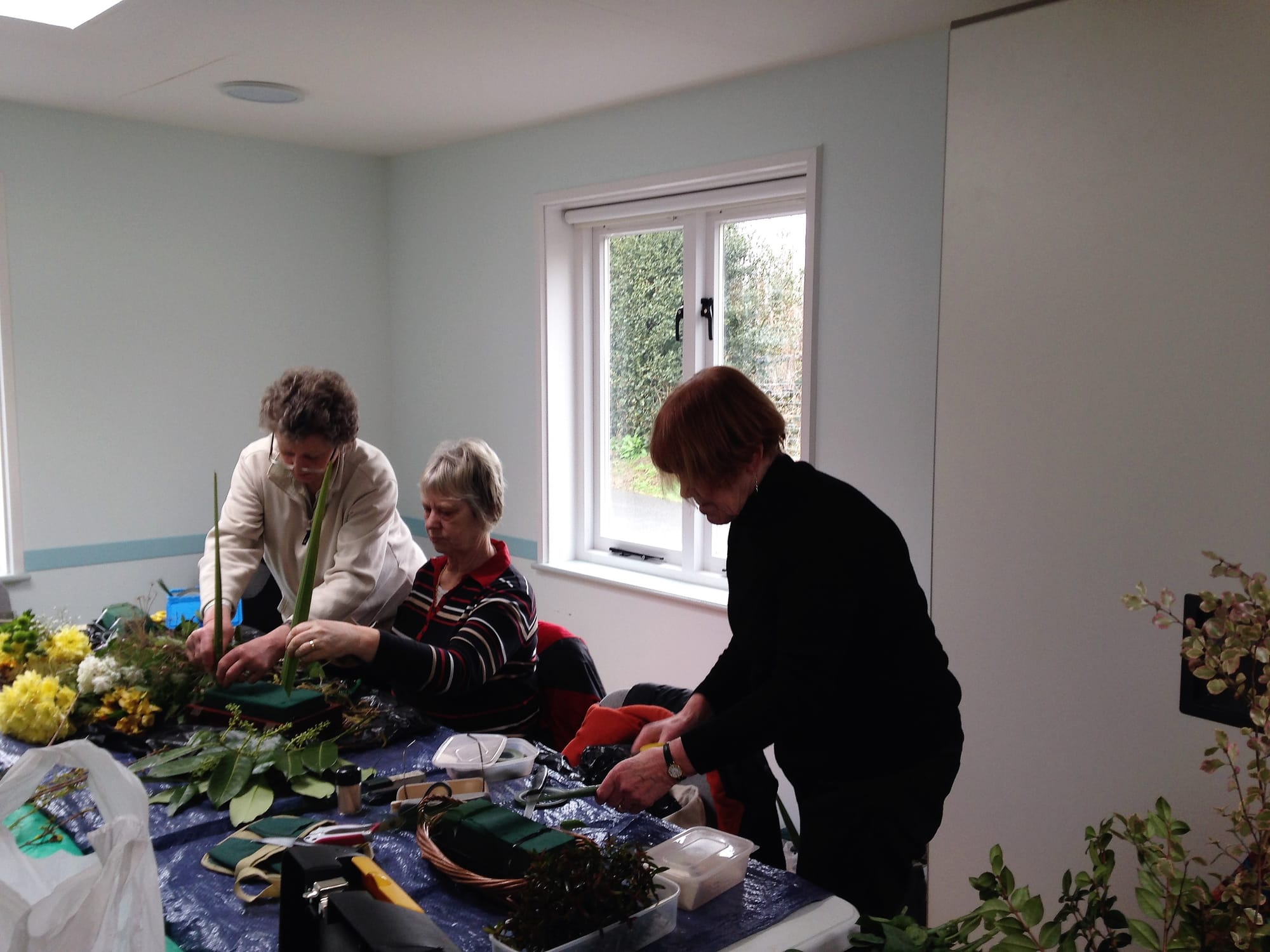 Organised by Deidre Bull, if you have always fancied having a go at producing a really balanced and attractive arrangement, why not join the group? New members are very welcome, and their first session, either simply to watch or to participate, is free. We had someone observing today, and she was persuaded by Deidre to try her hand. I think she enjoyed it and we hope to see her again.