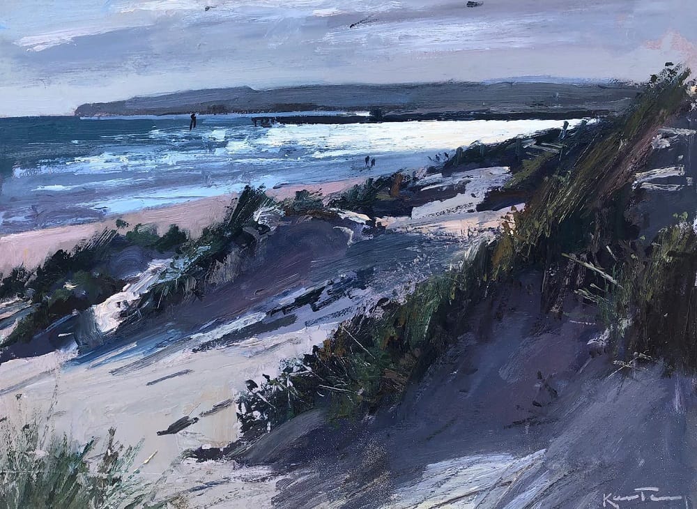 Karl works in oils producing both landscapes and cityscapes. He says “my works are a response to what I see in particular moments in life. It might be figures strolling much-loved coastlines, glistening in ever changing light patterns, or simply perusing high streets of local towns, typical scenes from our everyday existence”