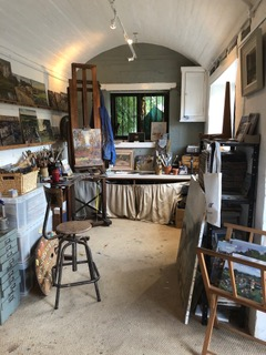 Whilst Karl paints mostly outside he also has a studio in the old village gaol in Wittersham that he opens by appointment. "I occasionally make much larger paintings in my studio using the ones I've done outside for reference. Here in the UK the weather is so changeable that its hard to take huge canvases into the landscape as everything changes so fast. That said I do occasionally try, but usually have to go back several times if the painting is larger than 20 x 30 in. I do work mostly in oil and I paint on board more than canvas as I find it sturdier and easier to transport".