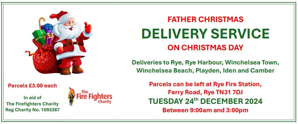 It has become a tradition at Rye Fire Station that the firefighters, with valued help from ex-firefighters and local people, deliver parcels dressed as Father Christmas on Christmas morning. All the help is voluntary and monies raised are donated to the National Firefighters’ Charity.