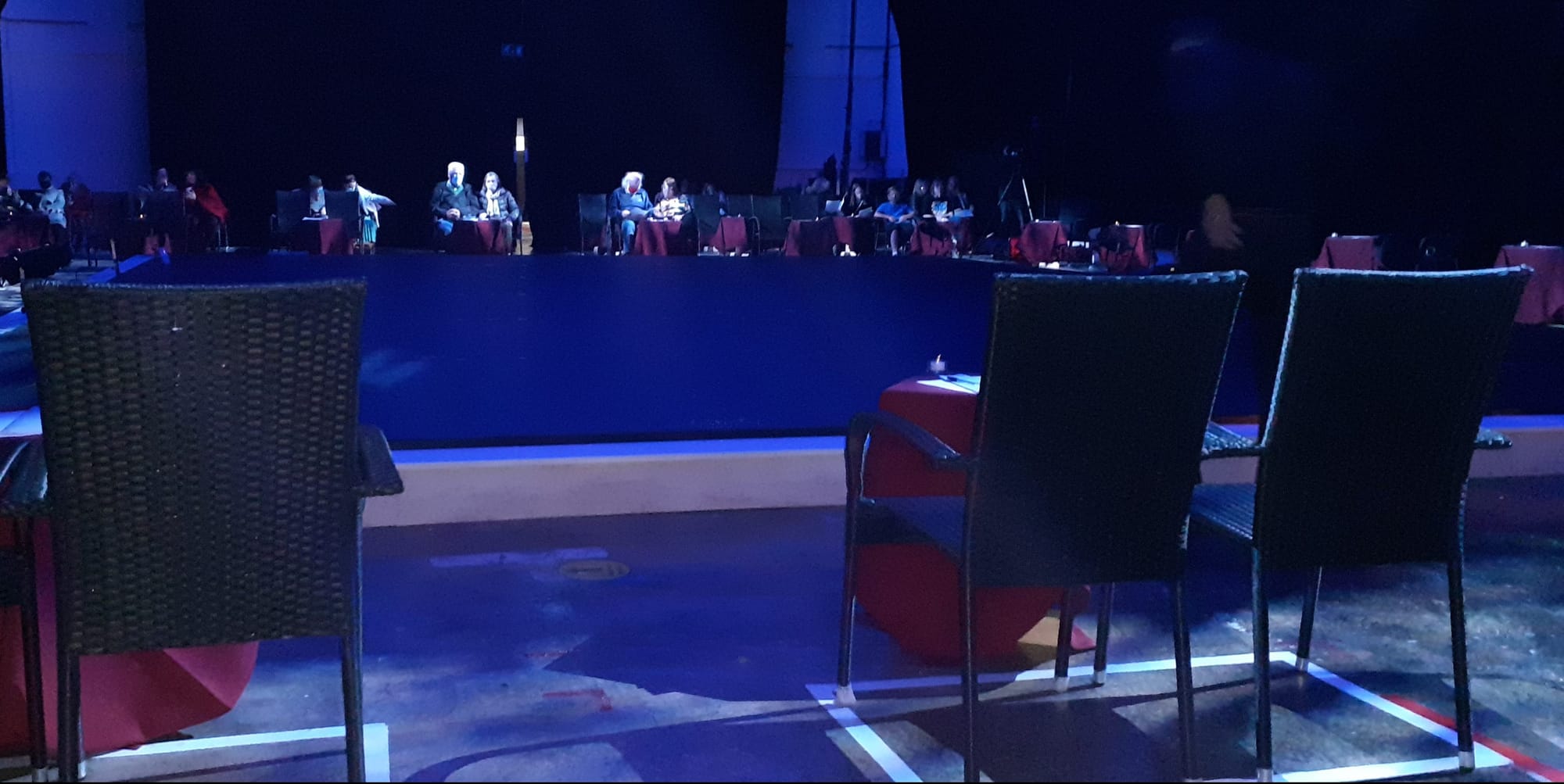 Bridgepoint is the creative arts complex in Rock Channel and before the pandemic they offered a few pop up art and music performances. The weekend of September 26 the vast space was again transformed into a Covid safe performance venue. Light visors were distributed to wear when moving around or, if preferred, masks. The audience was seated spaciously, two seats to a table around the stage. The lighting by Rob Casey / Tom Turner contributed to a very atmospheric mood in the large room.