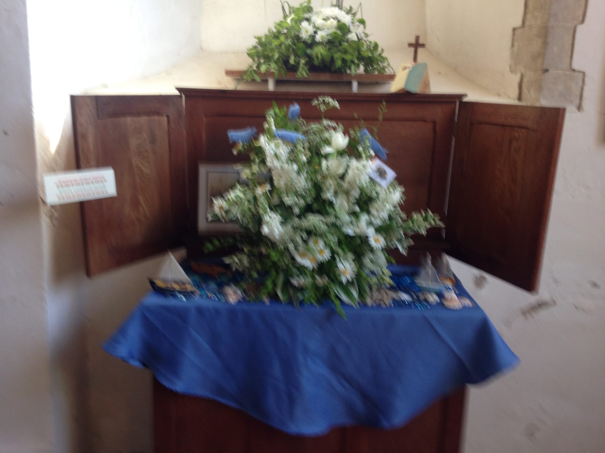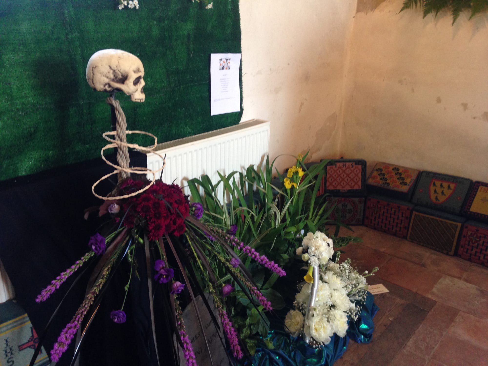 None of this would have happened without the support of the Rector, and the sterling organisational skills of Deidre Bull, who never stopped working over the preceding days and was the waterer and general carer of the arrangements over the following three days. Ably assisted by Alex Boatwright-Smith and others, everything turned out beautifully, and the church was a picture full of colour, shape, texture and scent. "Oranges and Lemons" hung from the ceiling, "Any Old Iron" surrounded the font and the little window between the main part of the church and the altar hosted " A Nightingale Sang". It was a lovely way to finish a day.