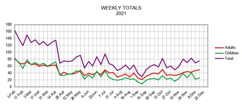 The numbers visiting Rye Foodbank have risen slightly, as shown in the graph, but we were able to deliver generous and cheering Christmas hampers as well as regular food parcels to almost eighty people on Wednesday, December 8.