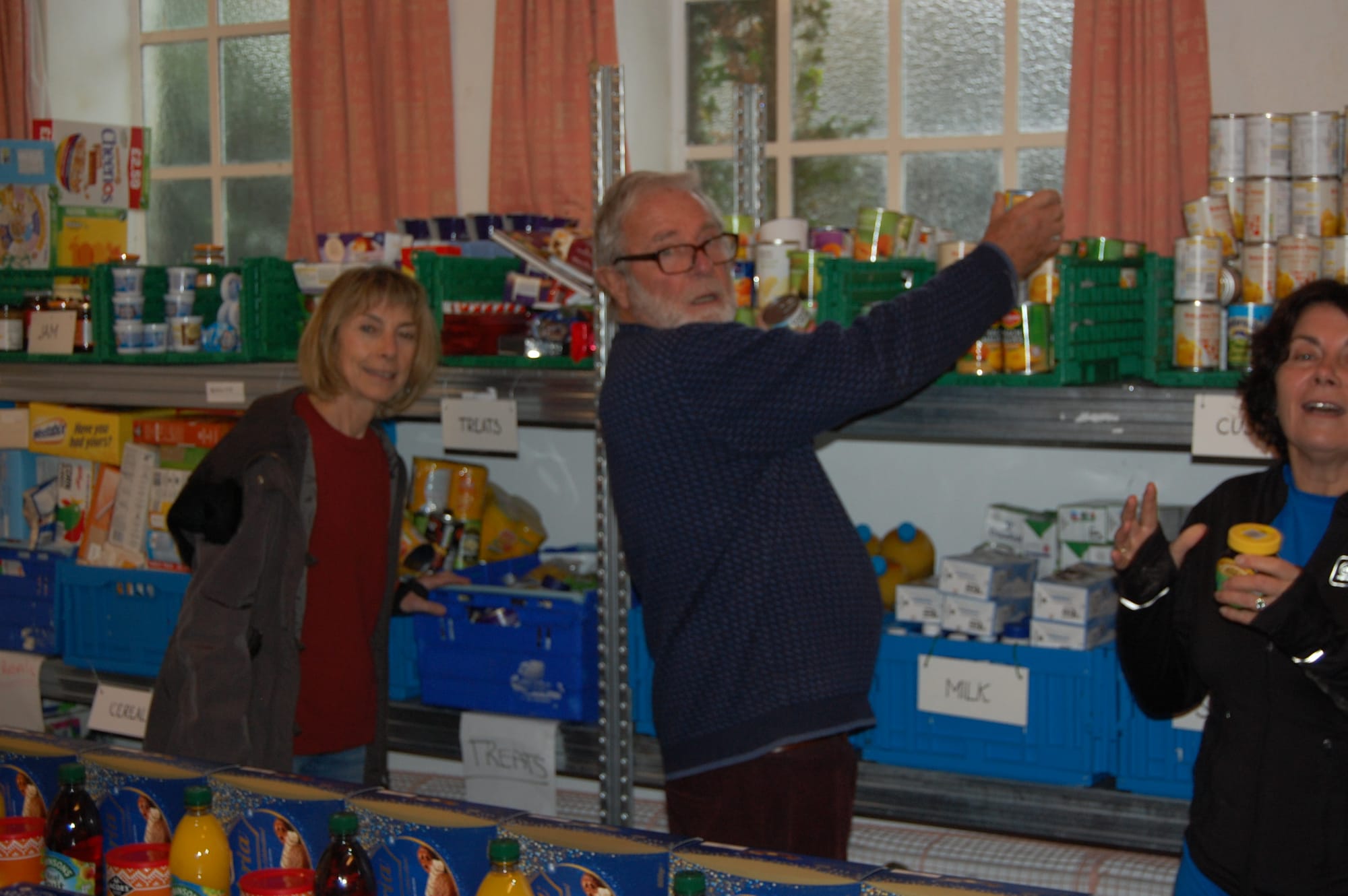 Behind the scenes lies quite a formidable organisation, under the supervision of John Gurney. Stores are sorted and listed by volunteers at the Methodist Church, having been received from food collection points in local churches or purchased from a supermarket, using funds donated for that purpose. The storage racking in the mini warehouse is kept "shipshape and Bristol fashion" as the Navy saying goes, with everything sorted in its proper place ready to respond to food requisitions lists sent in from the front line.
