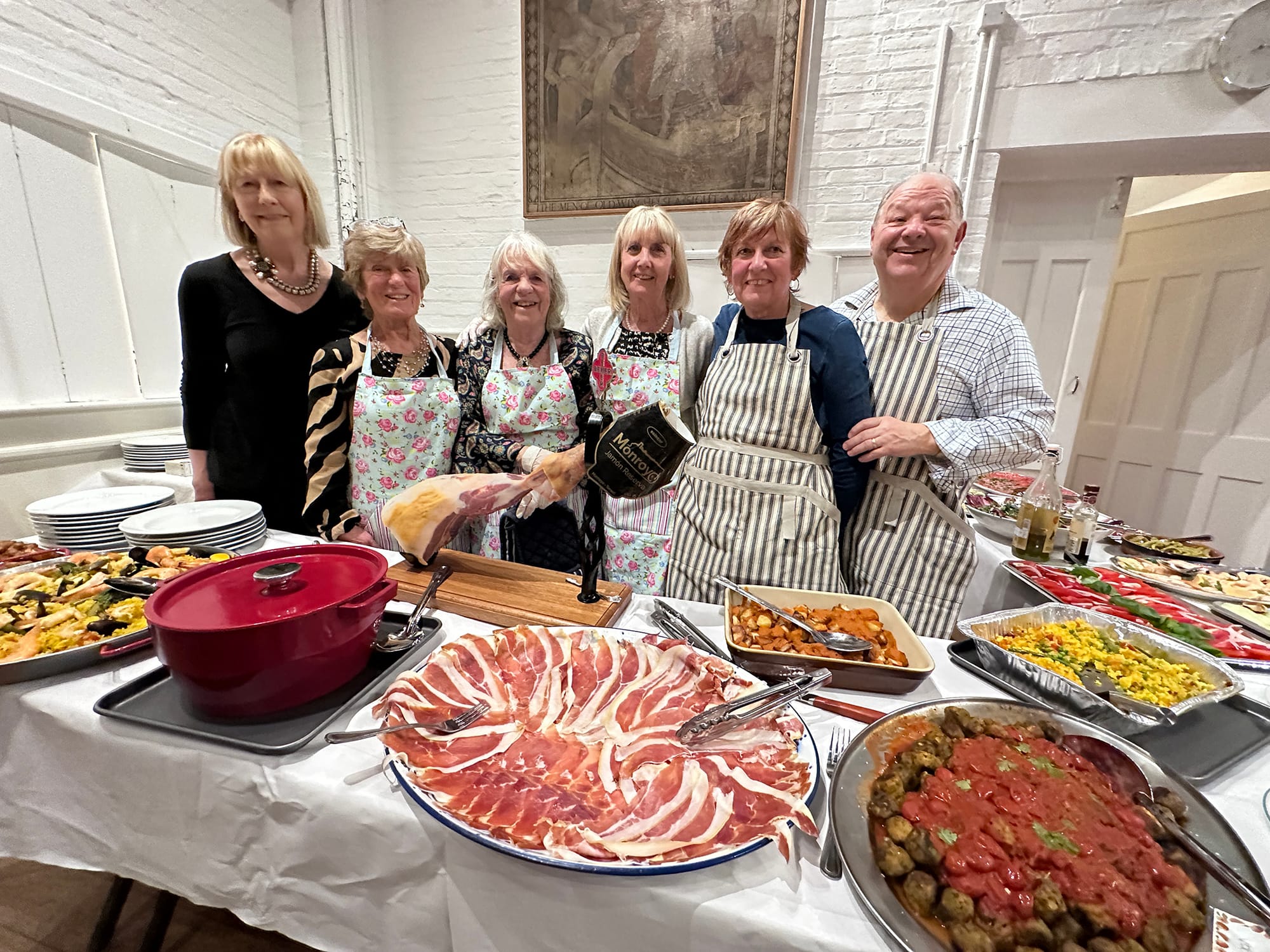 With amazing costumes, impressive dancing and haunting music, the audience could easily have felt that it was in Spain. Next on the agenda came the varied selection of fifteen tapas dishes, with a centrepiece of a whole Sorrano ham generously donated by the Spanish food company Brindisa and expertly carved by Jamie Wickens.