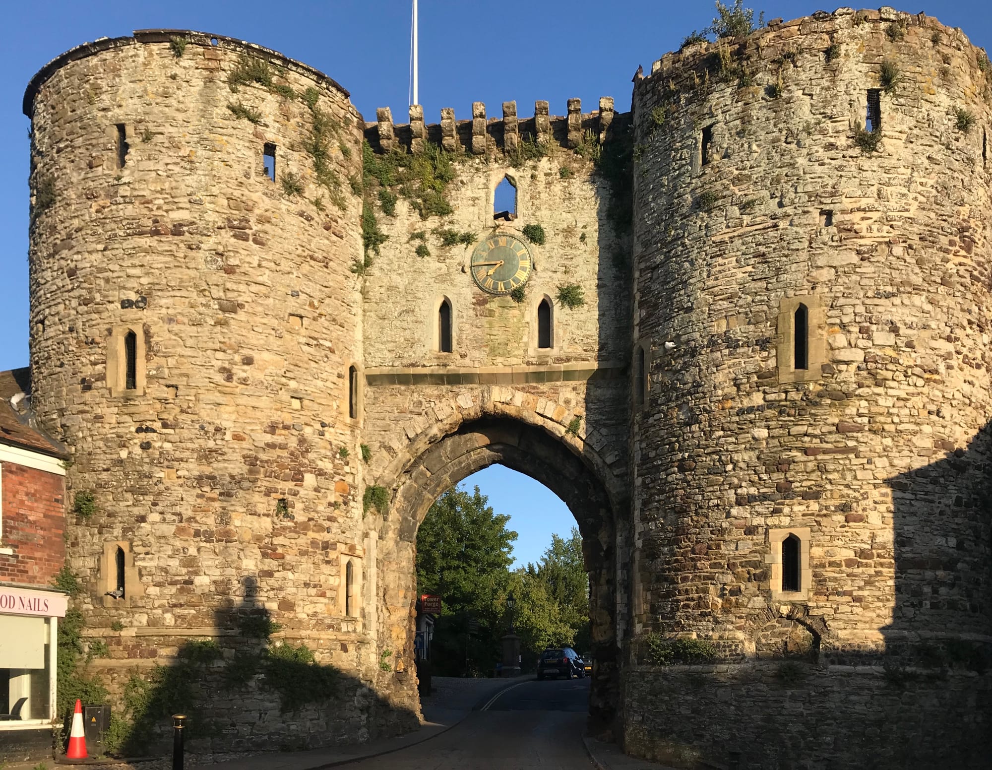 The Landgate is another fine stone structure, a medieval gateway, built in 1329 by Edward III. At high tide, Rye was surrounded on three sides by the sea, the only means of entry being through the Landgate. The Landgate has two round towers on stone plinths and is still one of the main access points to the town centre.