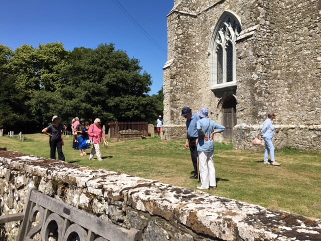 Each year the Friends plan a summer outing to visit two or three churches on or around Romney Marsh and then take tea with the Women’s Institute. This year, on June 30, we revisited churches last seen 10 years ago. The visit took place during the period of hot weather. Twenty four Friends met a Rye Community bus and some private cars at Rye Station Approach. I, as Chairman of the Friends, had arranged access to the ancient churches of Ivychurch and Bonnington and would be the guide for the afternoon.