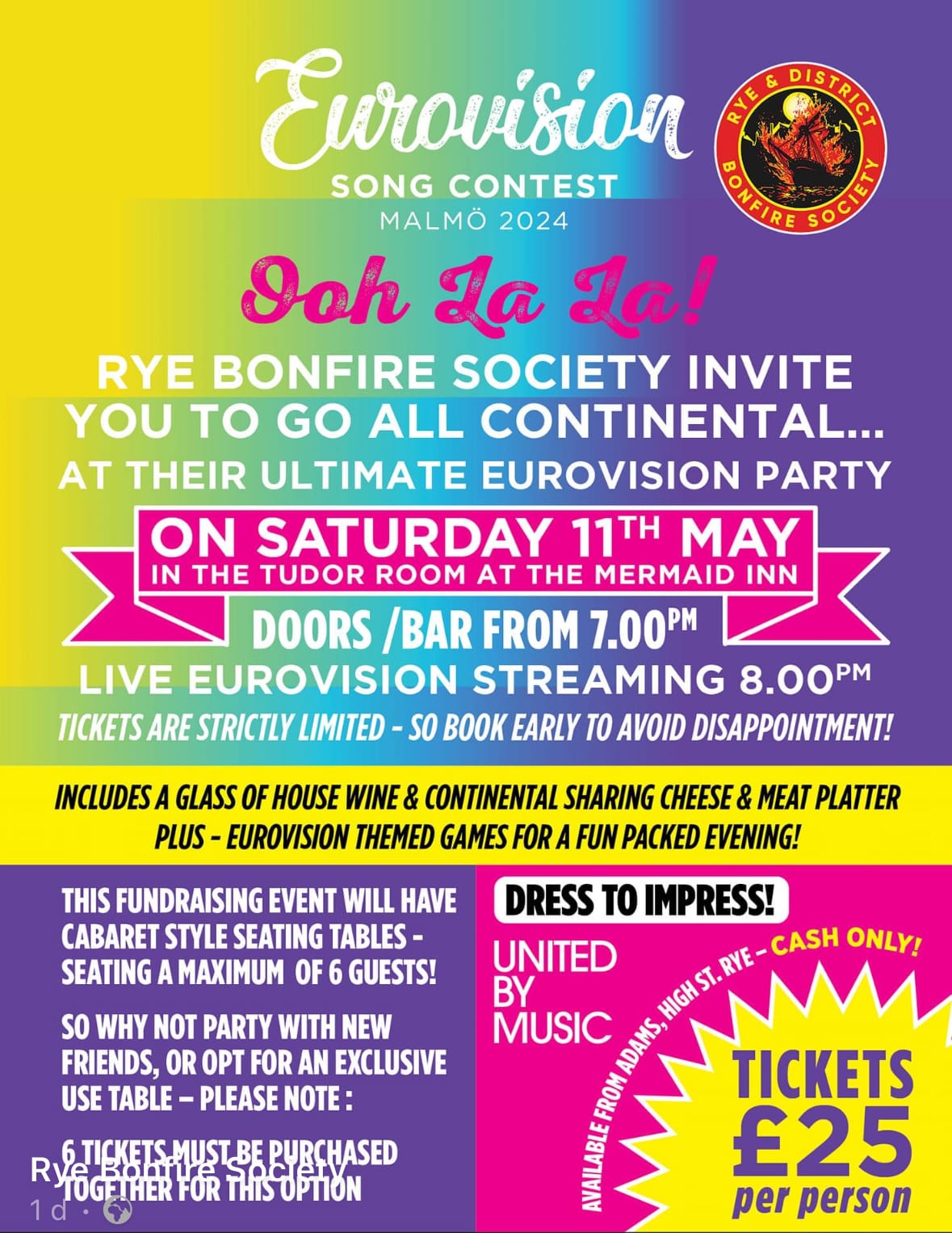 “The Bonfire Society's next fund-raising event will be their Ultimate Eurovision Party. Details are on social media and judging by the success of their two sing-along movie nights, it will be another superb event.”