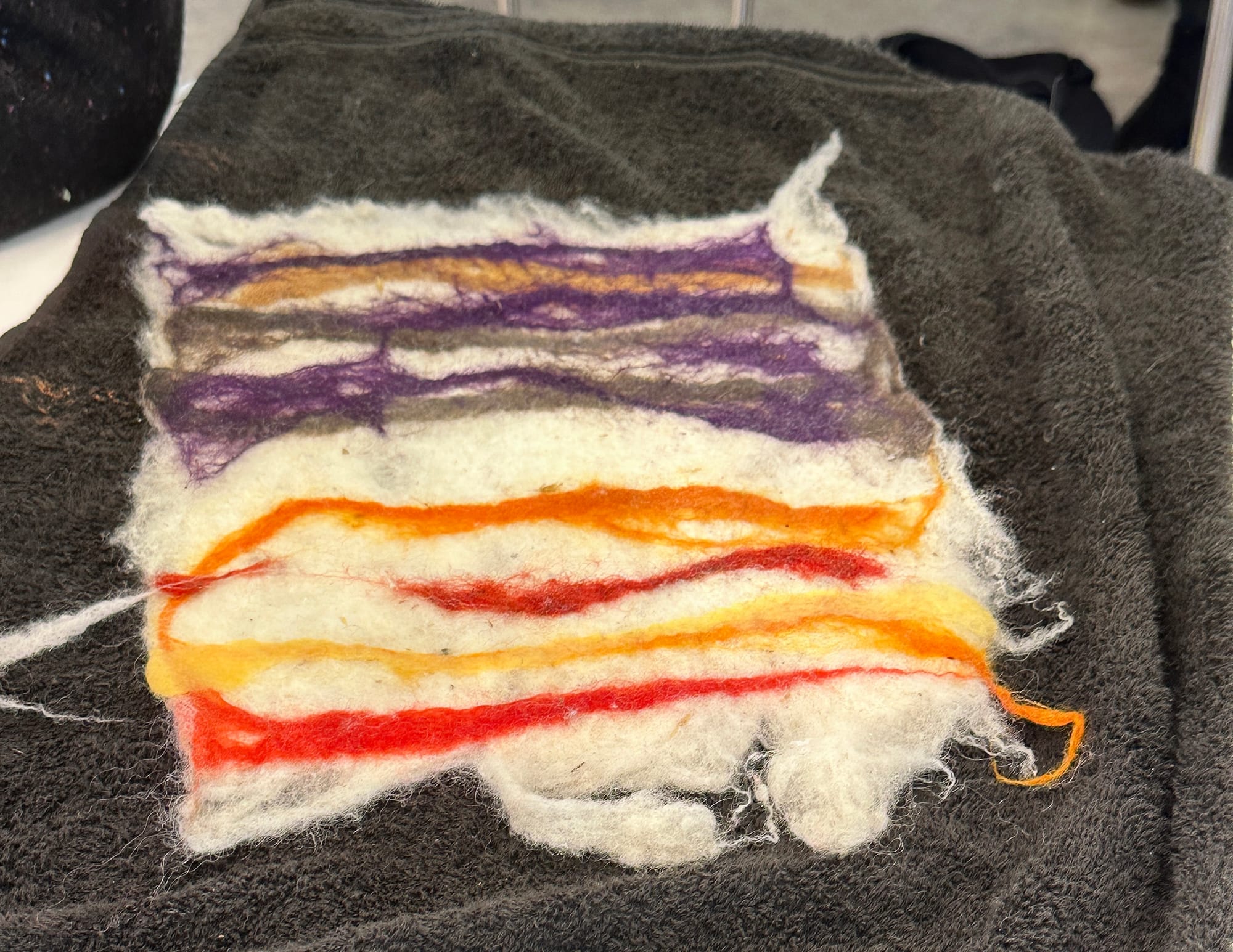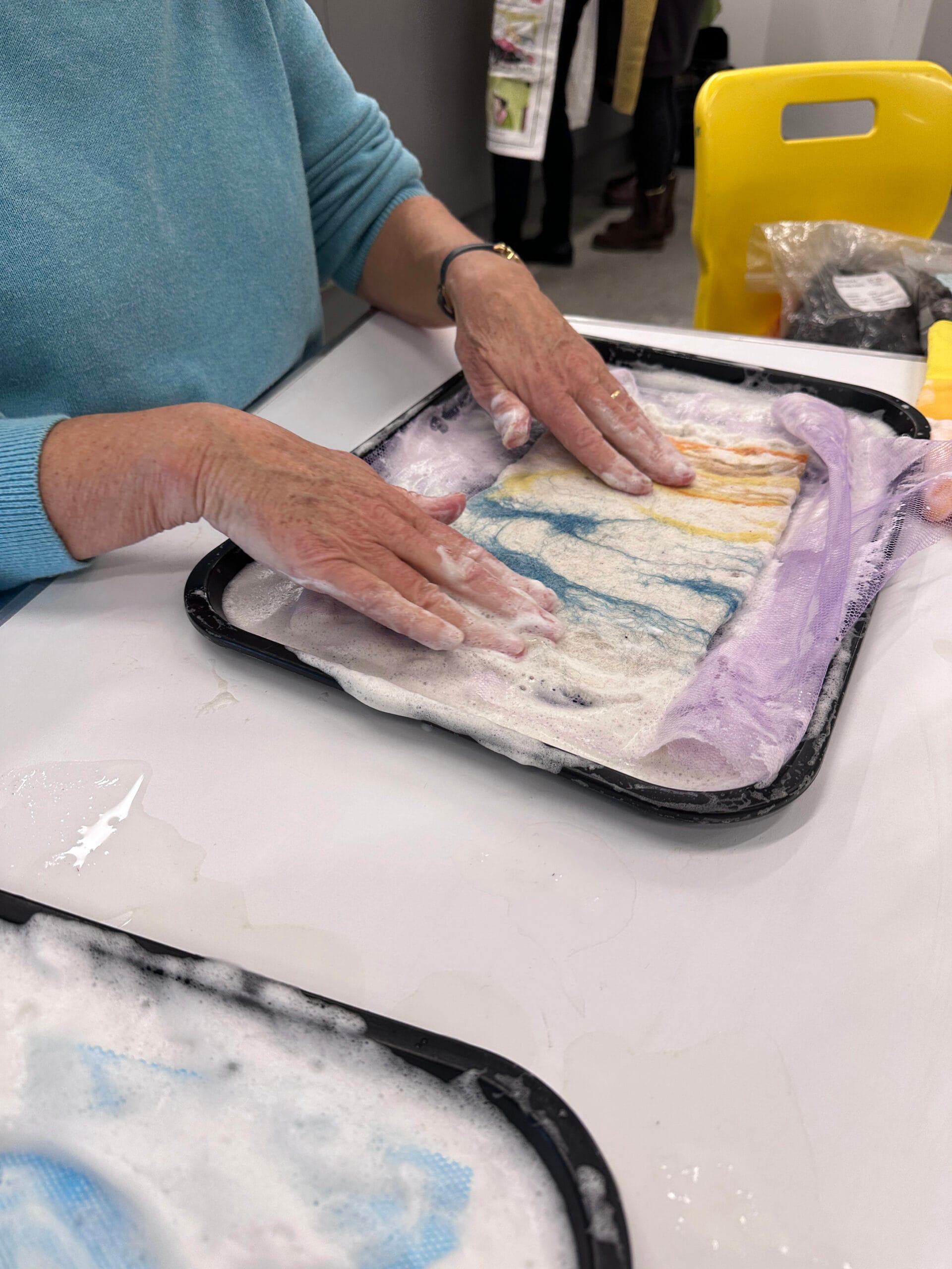 “The secret is wool, water and hard work and, by the end of the session, all had produced a piece of work to take home, perhaps to keep as an artwork or to be further worked and embellished to be used in some other way.”