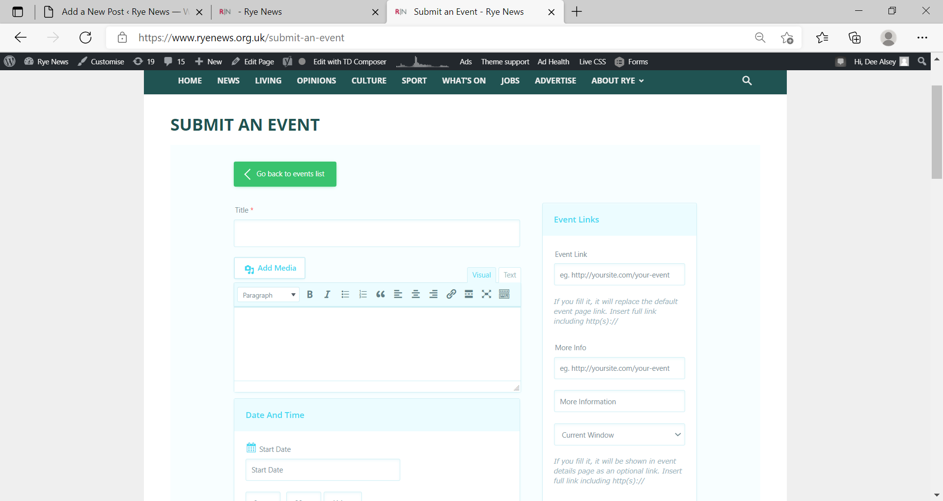 The most important details to add, are Title, a brief description underneath and Start Date and Start Time. You will see a box which enables you to choose the End Time or you which you can also hide if you are unsure when it will finish.