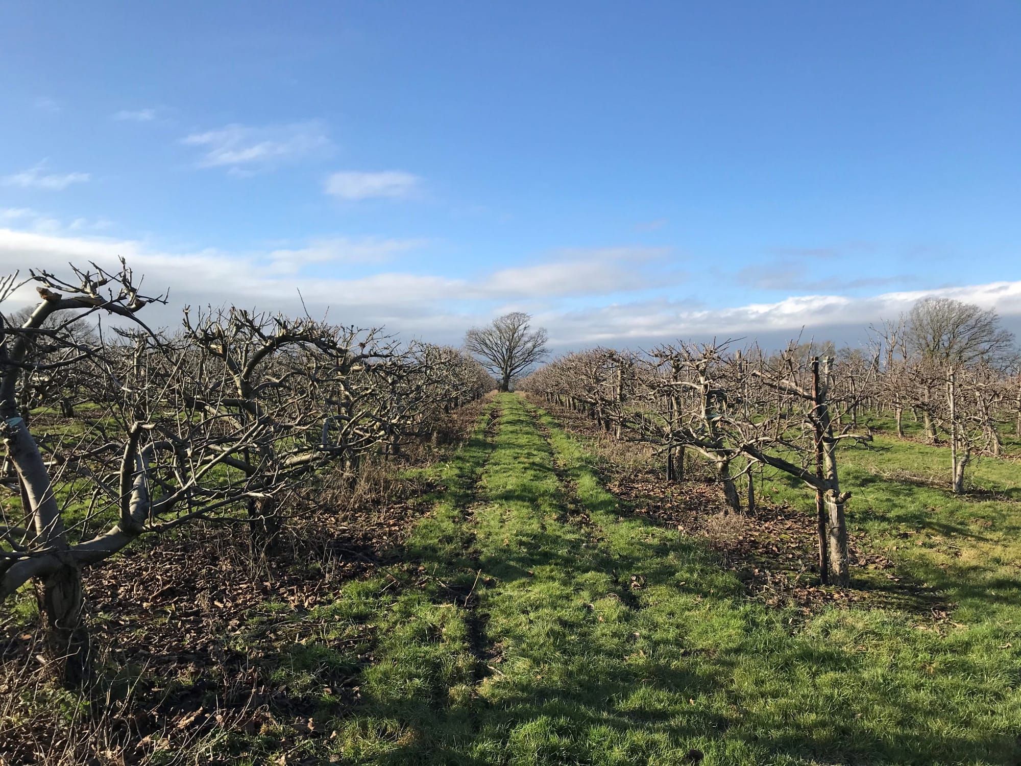 Iden Moat was built in 1318 and surrounded what was then a castellated house, Mote Place. In the 15 century this was home to Alexander Iden, who captured the rebel leader, Jack Cade. All that remains now are foundations and earthworks and the moat itself. A great photo opportunity and such a peaceful and picturesque location. Our walk took us to the junction with Readers Lane and Coldharbour Lane, having walked through another working apple farm and buildings and surrounded by acres of fruit trees.