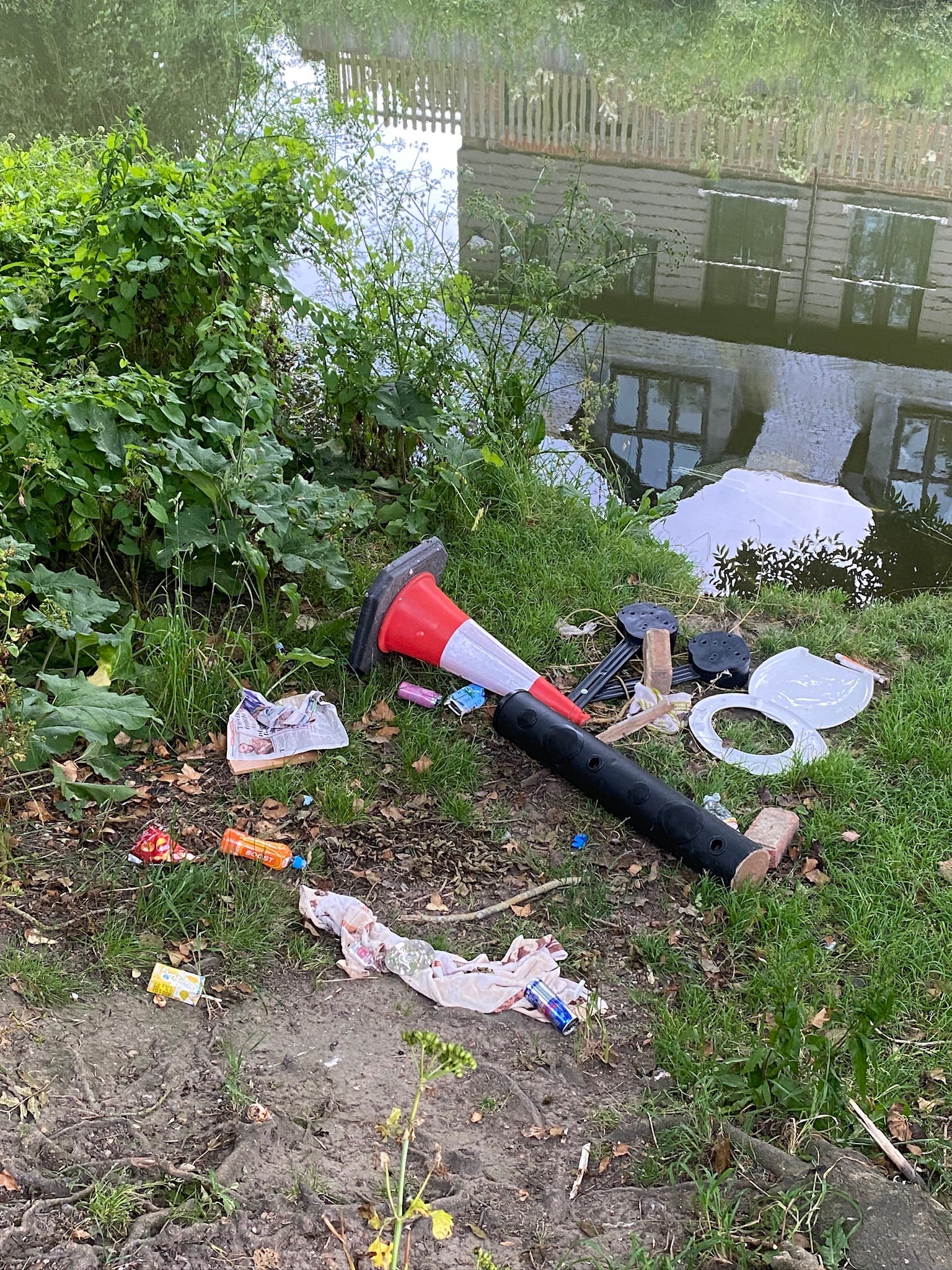However, some kind and energetic people cleared the lot on Monday July 1 and Tuesday July 2, including the shopping trolley lurking in the depths. Many thanks to the people who did this, so the ducks are safe again and using the bank.