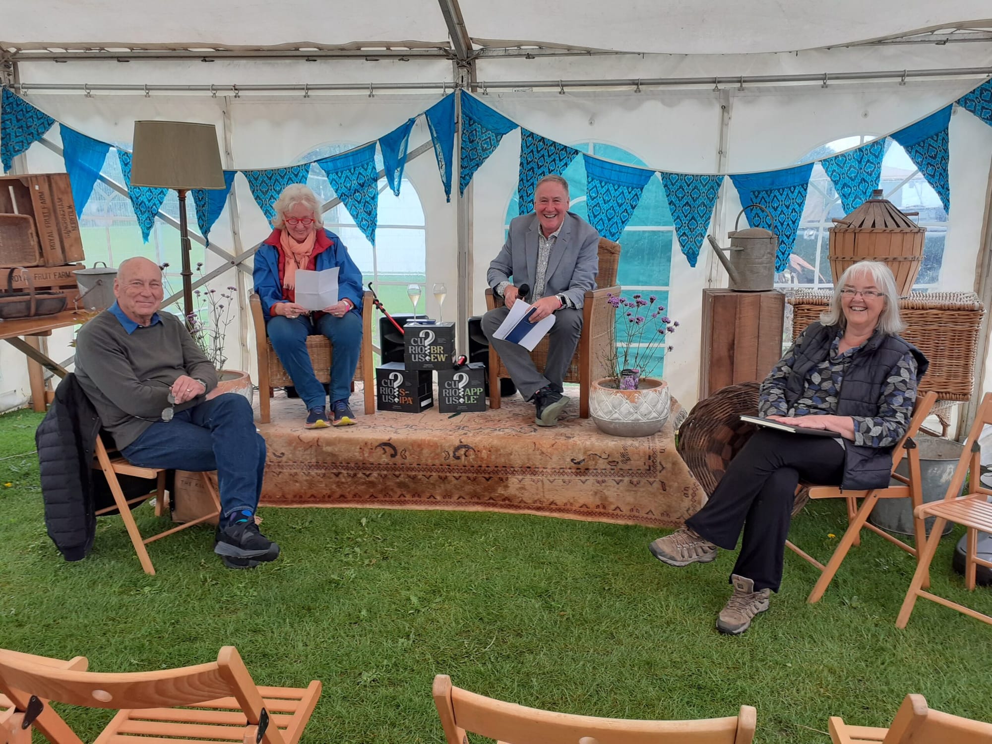 The nearest tent offered poetry by four of the Rye Harbour Writers, a group of poets, living or working near Rye, East Sussex. Their book The Station Poems (financed from Southern Funding) is a collection of poems written by them and displayed over the years in the Rye Station ticket hall. The ones the poets presented were on the whole about food, how much one can forage and written with a sense of humour.